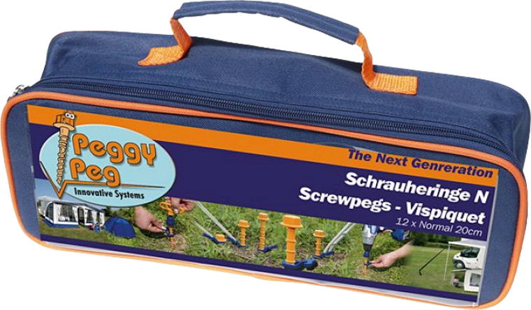 Peggy Peg Tasche – und deine Zeltheringe sind immer aufgeräumt Zum praktischen Verstauen deiner Peggy Peg Heringe. Maße: 36 x 11 x 12 cm. Art Heringe: Schraubhering, Boden: extrem harte Böden, Material: 100 % Polyester, Verpackungseinheit: 1 Stück, Farbe: blau, orange