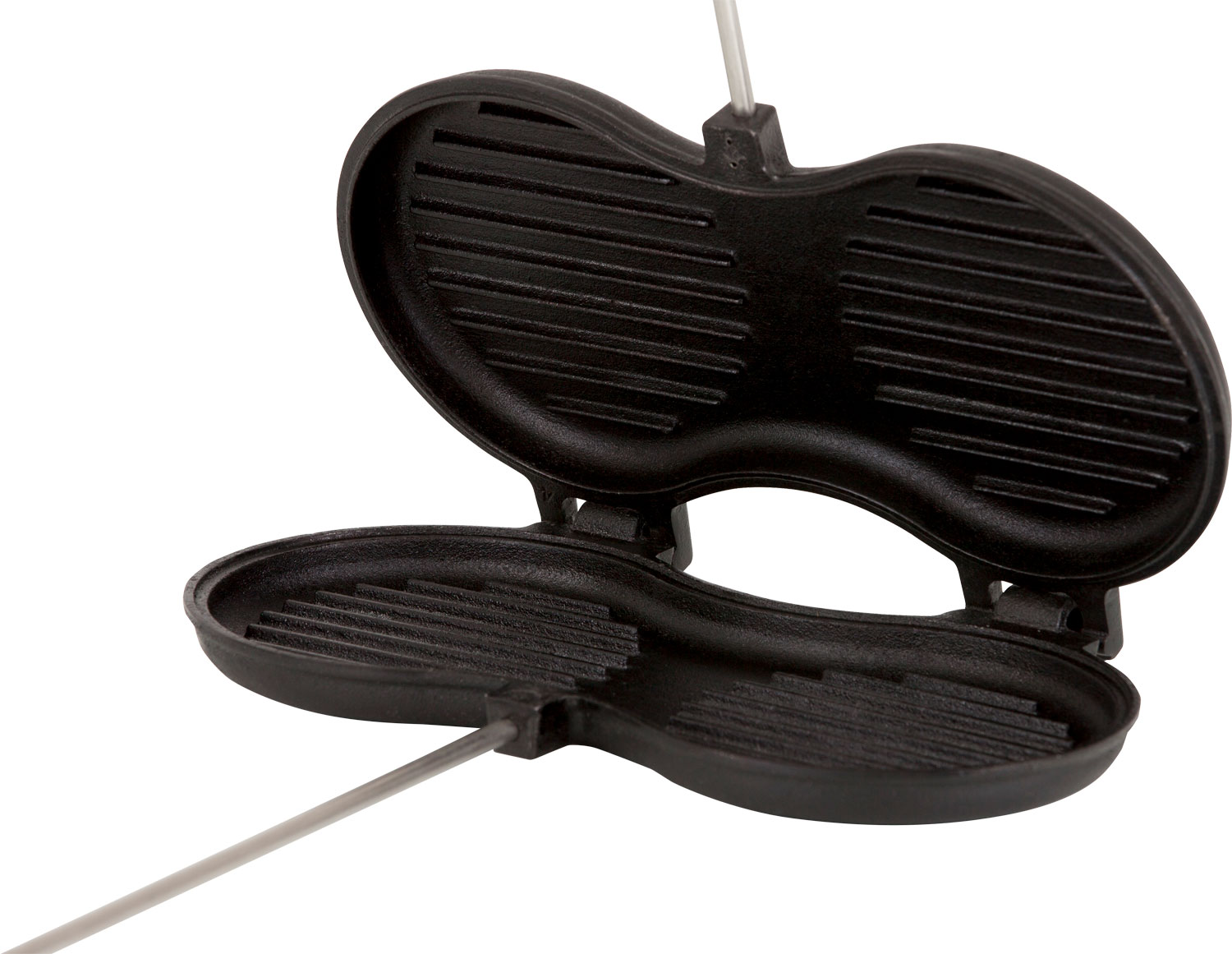 Saftige Burger gehören zur Draußen-Küche unbedingt dazu! Mit dem Petromax Burgereisen kannst du in den runden Formen mit je zwölf Zentimetern Durchmesser perfekte Burger braten. Dank der gerillten Oberfläche bekommen sie das typische Grillmuster. Durch die wärmespeichernden Eigenschaften der gusseisernen Form werden die Burger im Feuer scharf angebraten und können anschließend mit der Resthitze perfekt gegart werden. Dank der abgeflachten, aufliegenden Holzgriffe und des Verschlusshakens kannst du das Burgereisen sicher verschließen und in die Glut halten. Zum Reinigen kannst du die beiden Formen über das Scharnier einfach voneinander trennen und einzeln säubern. Für das problemlose Entfernen von Bratrückständen in der Grillstruktur empfehlen wir dir den Petromax Schaber mit Rillen für Gusseisen. Technische Daten * Material: Gusseisen, Edelstahl, Holz * Durchmesser je Burger Patty: 12 cm Gewicht: 2,6 kg, Höhe: 3,5 cm, Griffart: Holz, Material: Gusseisen