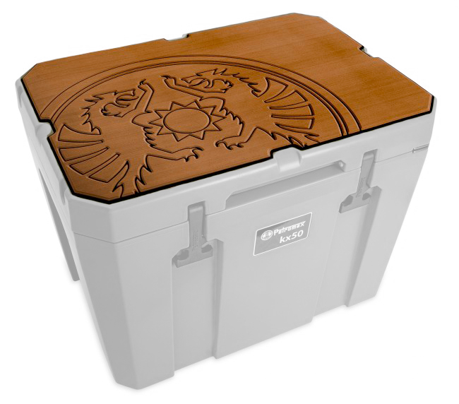 Petromax Haft-Auflage für Kühlbox kx50 braun mit Drachenemblem – Kühlboxen-Zubehör
