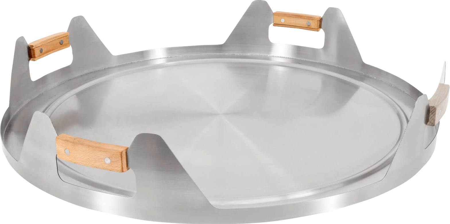 Tyropit Deckel – Abdeckung, Ablage und Stehtisch in einem Mit dem Tyropit Deckel ergänzt du deine Feuerschale um eine stabile und vielseitige Erweiterung. Der Deckel aus langlebigem Edelstahl sitzt dank der cleveren Zentrierrille sicher auf der Schale und lässt sich durch zwei massive Griffe aus Buchenholz angenehm anheben. Du kannst ihn nicht nur als Abdeckung nutzen, sondern auch als praktische Ablagefläche für Grillzubehör oder Zutaten. Aufgesetzt verwandelst du deinen Tyropit sogar in einen stabilen Stehtisch. Nach dem Ausglühen schützt der Deckel zuverlässig vor Ascheflug und verhindert das Eindringen von Regenwasser – ideal für eine saubere und geschützte Feuerstelle. Details: * Multifunktionale Nutzung als Abdeckung, Ablagefläche und Stehtisch * Angenehme Handhabung durch massive Griffe aus Buchenholz * Selbstzentrierende Auflage durch umlaufende Rille auf der Unterseite * Langlebiger Edelstahl für zuverlässigen Outdoor-Einsatz * Passgenau für die Feuerschale Tyropit * Schützt vor Ascheflug und Regenwasser Technische Daten: * Material: Edelstahl, Buchenholz * Maße (H × B × T): 10,1 cm x 60,3 cm x 60,3 cm * Gewicht: 2,7 kg * Gewicht mit Verpackung: 3,48 kg * Maximale Belastung: 40 kg Lieferumfang: * 1 x Deckel für Feuerschale Tyropit Gewicht: 2,7 kg