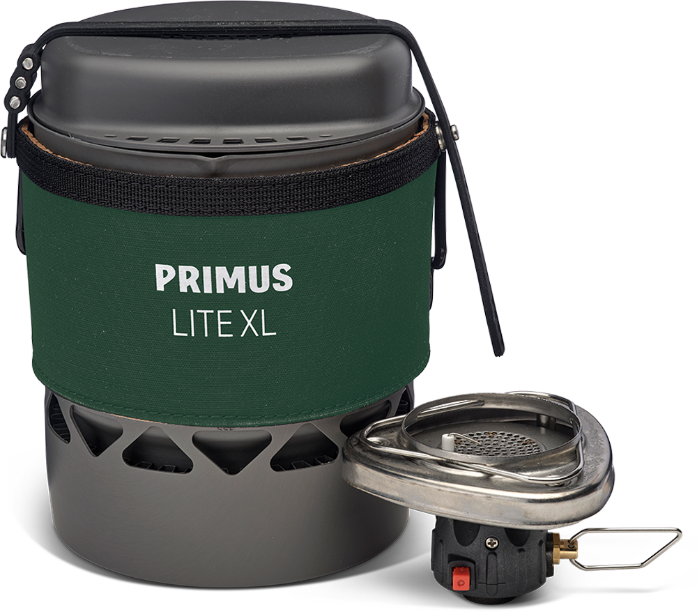 Primus Lite XL Stove System II – kompaktes Kochsystem mit 1,0 l Topf für 1–3 Personen Das Primus Lite XL Stove System II ist ein kompaktes und leicht zu bedienendes Kochsystem für ein bis drei Personen. Es wurde speziell für Wanderungen und Klettertouren entwickelt und eignet sich ideal zum schnellen Erhitzen von Wasser oder zum Zubereiten einfacher Mahlzeiten unterwegs. Der windresistente Brenner mit Laminar Flow Burner Technologie sorgt für einen niedrigen Schwerpunkt und hohe Stabilität auch bei windigen Bedingungen. Mit 1700 W Leistung erhitzt der Kocher Wasser effizient und kraftstoffsparend. Der 1,0 l Topf aus harteloxiertem Aluminium mit integriertem Wärmetauscher verbessert die Effizienz zusätzlich. Klappbare Griffe, eine isolierte Topfhülle, ein verbesserter Piezo-Zünder sowie ein Packriemen sorgen für komfortables Handling und platzsparendes Verstauen. Details * Kompakter Gaskocher für ein bis drei Personen * Aufschraubkocher mit Kartuschenstütze für stabilen Stand * Laminar Flow Burner Technologie für niedrigen Schwerpunkt und hohe Stabilität * Kraftstoffeffizienter Brenner mit 1700 W Leistung * 1,0 l Topf aus harteloxiertem Aluminium mit Wärmetauscher und Ausgießfunktion * Deckel aus biobasiertem Kunststoff (Kunststoff) auch als Becher nutzbar * Klappbarer Topfgriff und isolierende Topfhülle für sicheres Handling * Überarbeiteter Piezo-Zünder * Weicher Packriemen für platzsparendes Verstauen * Kompatibel mit Primus Power Gas, Summer Gas oder Winter Gas * Gas nicht im Lieferumfang enthalten Technische Daten * Leistung: 1700 W * Topfvolumen: 1,0 l * Material Topf: Aluminium (Aluminium) * Material Deckel: Kunststoff (biobasierter Kunststoff) * Kompatible Gaskartuschen: Schraubkartuschen z. B. Primus Power Gas, Summer Gas oder Winter Gas Lieferumfang * 1 x Brennereinheit * 1 x Topf 1,0 l mit Wärmetauscher * 1 x Deckel auch als Becher nutzbar * 1 x Piezo-Zünder * 1 x Kartuschenhalterung * 1 x isolierende Topfhülle * 1 x Packriemen Hinweis Gaskartusche nicht im Lieferumfang erhalten. Zündsicherung: Nein, Anzahl-Brennstellen: 1 Flamme, Farbe: grün