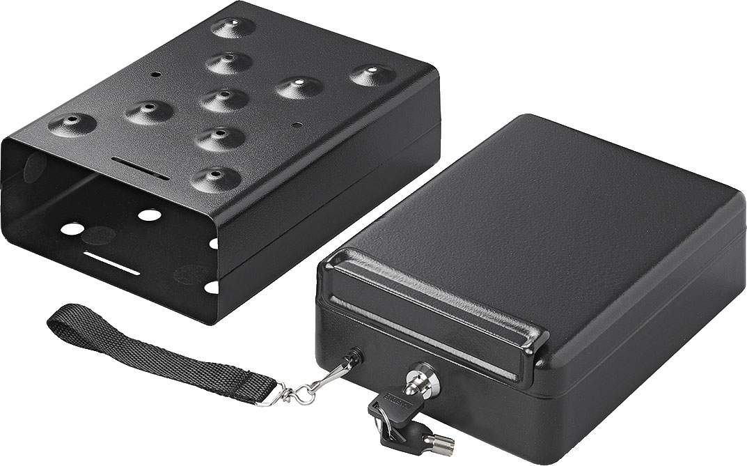 Extra Sicherheit für Ihre Wertsachen – egal ob zuhause oder unterwegs! Dieser kompakte Mini-Safe eignet sich ideal für jede Reise. Verstauen Sie Ihre Wertsachen ganz diskret in der unscheinbaren Metall-Box. Durch wenige Handgriffe können Sie den Safe zudem ganz einfach an einer festen Stelle in Ihrem Wohnwagen oder Reisemobil montieren und Ihre Wertsachen sicher verwahren. Art Sicherheitszubehör: Safe, Maße (LxBxH): 22,5 x 16,5 x 8,5 cm