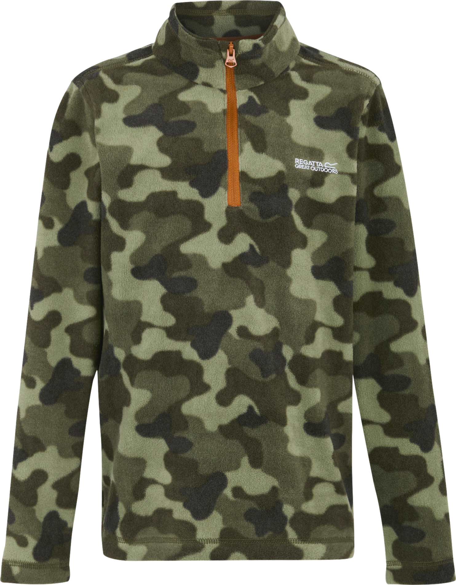 Regatta Hot Shot II Kinder Fleecepullover Der Hot Shot II Fleecepullover von Regatta ist der perfekte Begleiter für kleine Abenteurer. Das weiche Symmetry-Fleece sorgt für hohen Tragekomfort, während die Antipill-Ausstattung die Bildung von Fusseln verhindert und so für langlebige Qualität sorgt. Die aufgeraute Innenseite bietet ein angenehm warmes Gefühl, ideal für kühle Tage beim Wandern, Camping oder im Alltag. Dank des halblangen Reißverschlusses lässt sich der Pullover schnell an- und ausziehen, und das pflegeleichte Material trocknet schnell. Details: * Weiches Symmetry-Fleece für hohen Komfort * Anti-Fussel-Ausstattung für längere Haltbarkeit * Innenseite gebürstet für extra Wärme * Halblanger Reißverschluss für einfaches An- und Ausziehen * Unifarben oder mit All-Over-Print erhältlich * Hergestellt aus recycelten Materialien Technische Daten: * Material: 80 % Polyester, 20 % recyceltes Polyester (170 g/m²) * Außenseite mit Antipill-Ausstattung * Innenseite gebürstet * Technologie: Symmetry – schnell trocknend, pflegeleicht und komfortabel Lieferumfang: * 1 x Regatta Hot Shot II Kinder Fleecepullover Art Kindershirts: Pullover, Geschlecht: Mädchen & Jungen, Material: 80 % Polyester, 20 % recyceltes Polyester, Farbe: olive night camo, Größe: 164