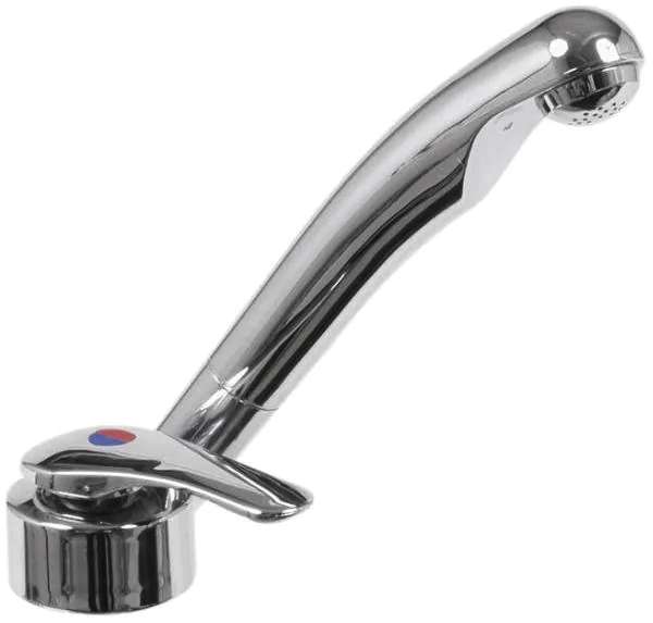 EHM KERAMIK TWIST m. UniQuickRohr 130mm Einhebelmischer Keramik Twist mit hochwertiger Keramikkartusche und Mikroschalter. Durch Abziehen des Auslaufrohres kann eine Brause mit ½” Gewindeanschluss angeschraubt werden. Hochwertiges Kunststoffgehäuse in anspruchsvollem Design. Der bedienerfreundliche Griff ermöglicht optimales Mischen und Regulieren der Wassermenge. Niedrige Bauhöhe für den Einbau in Spülbecken mit Glasplatte. Technische Daten: * Modell: Keramik Twist * Material: Kunststoff * Auslauf: 185 mm * Besonderheit: Abklappbares, gebogenes Auslaufrohr * Mikroschalter: Ja * Anschluss: 2 Tüllen 10 mm * Ausführung: Kalt- u. Warmwasser * Montagebohrung: ø 39 mm * Farbe: chrom * Druck: max. 6 bar * Aufbauhöhe: 40 mm * Gewindelänge: 26 mm * Plattenstärke: max. 21 mm Material: Kunststoff, Farbe: silber, Gewicht: 230 g