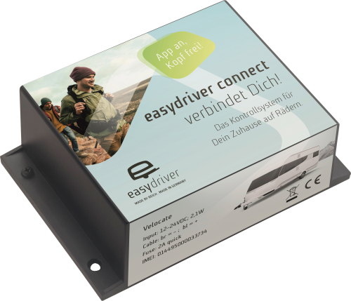 Reich easydriver connect Grundgerät Vernetzungsmodul Erlebe mehr Freiheit und Sicherheit auf Reisen mit dem easydriver connect Grundgerät. Dieses smarte Kontrollsystem für Wohnwagen und Wohnmobile ermöglicht es dir, dein Zuhause auf Rädern jederzeit und überall zu überwachen – bequem über die App. Details: * GPS-Ortungssystem für Echtzeit-Positionsermittlung * Diebstahlschutz mit Sicherheitszonensystem * Assistance Service zur Diebstahlsicherung mit Polizeiunterstützung * Überwachung wichtiger Fahrzeugdaten (z. B. Temperatur, Tankinhalt) via App * Erweiterbare Sensoren zur Fahrzeugkomponentenüberwachung * Mehrere Fahrzeugprofile und Verbindung zum elektronischen Stabilisierungssystem Technische Daten: * Maße: 8,9 x 4,8 x 13 cm (B x H x T) * Gewicht: 7,0 kg * Batterietyp: Lithium Lieferumfang: * 1x easydriver connect Grundgerät Vernetzungsmodul Art Sicherheitszubehör: Überwachungssystem