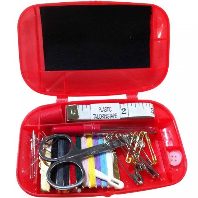 Ideal für Unterwegs oder auch für zu Hause. Inhalt: Annähdruckknöpfe, Hemdenknöpfe, Nähnadeln, Garn, Stecknadeln, Einfädler, Sicherheitsnadeln, Metallschere, Maßband, Nahttrenner, Durchziehnadel, Fingerhut, erweiterte Garnfarben, Glaskopfstecknadeln. Maße: 13 x 8 x 2 cm. Farbe: rot, Maße (LxB): 13 x 8 cm