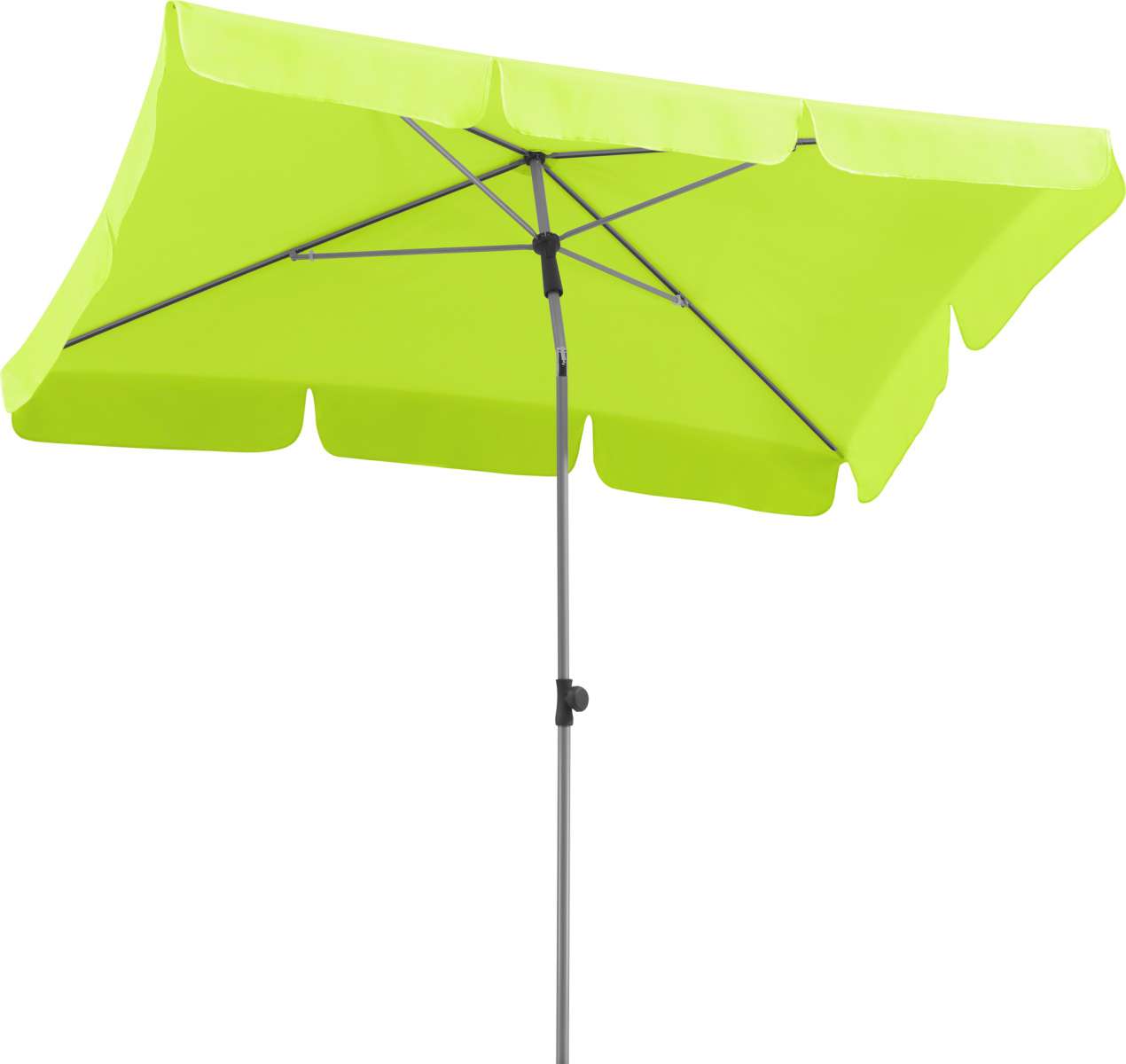 Sonnenschirm mit starken Farben, hochwertigem Material und einem UV Schutz von 50+. Bespannung: 100 % Polyester, ca. 160 g/m². Verrottungsfest, wasserabweisend imprägniert, mit Volant und Bandeinfassung. Gestell silbergrau pulverbeschichtet, alle Kunststoffteile anthrazit, großer Schieber mit Taste, Drehfeststeller, Kugeltop, Metallknicker mit Druckknopf, Stock 2-teilig Ø 22/25 mm. Durch die rechteckige Form der ideale Schattenspender für die komplette Sitzgruppe. Maße: 180 x 120 cm. Art Wind-/ Sicht- und Sonnenschutz: Sonnenschutz, Ausführung: Sonnenschirm, Farbe: grün, Höhe: 240 cm, Material: 100 % Polyester, Sichtfenster: Nein, Maße (LxB): 180 x 120 cm