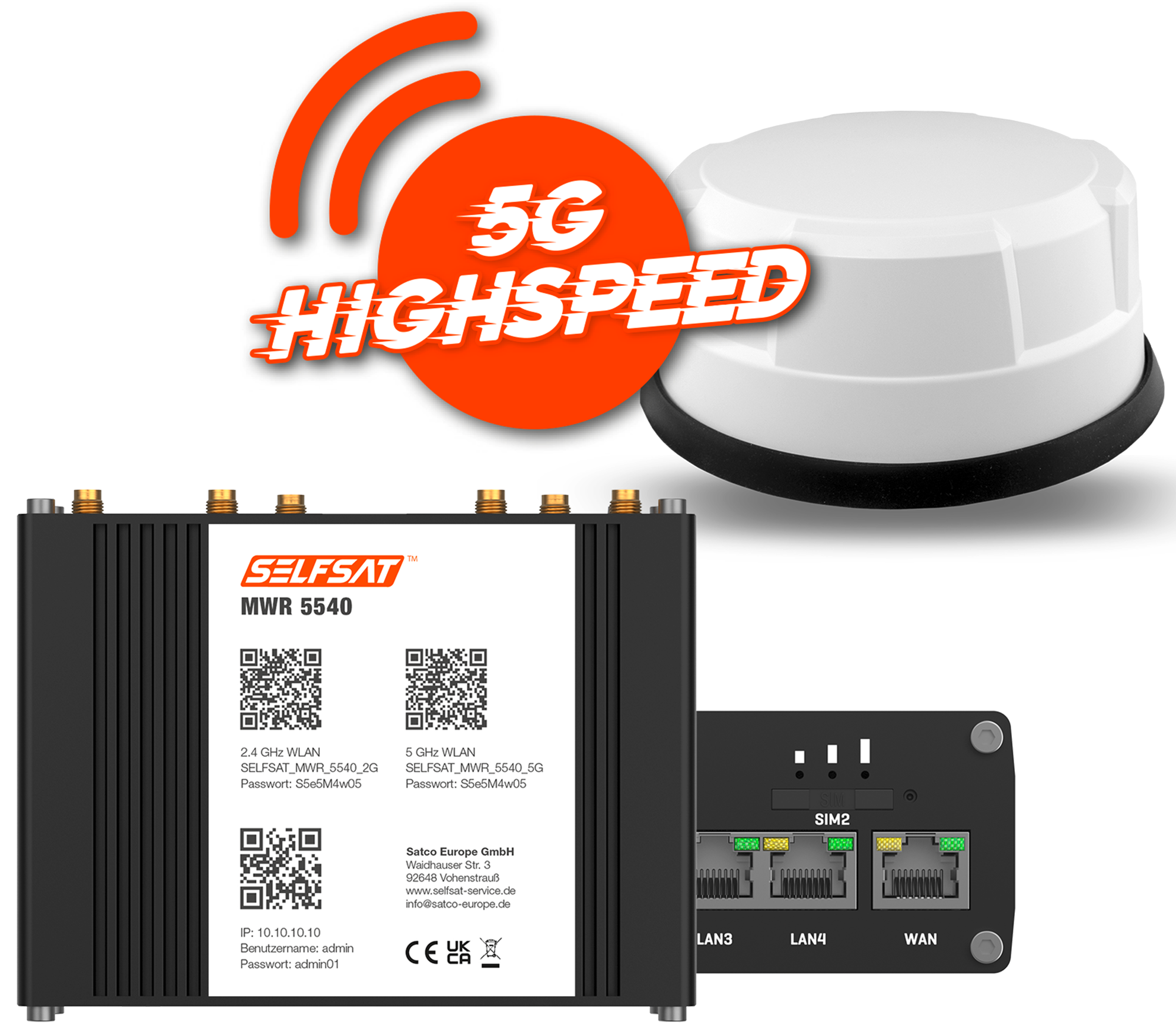 Selfsat 5G Cat 12 WLAN Router MWR 5540 bis 2,6 Gbps inkl. Panorama Antenne weiß – Router
