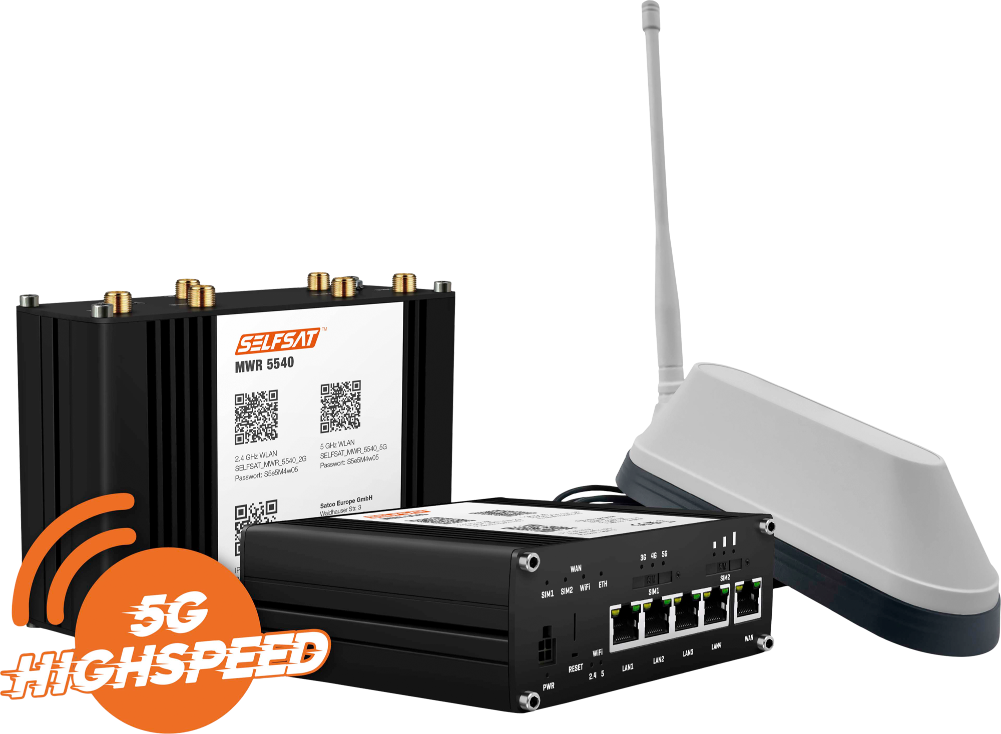 Selfsat MWR 5540 5G Cat 12 WLAN Router mit SHARK 5G Dachantenne weiß bis 2,6 Gbps – Router-Sets