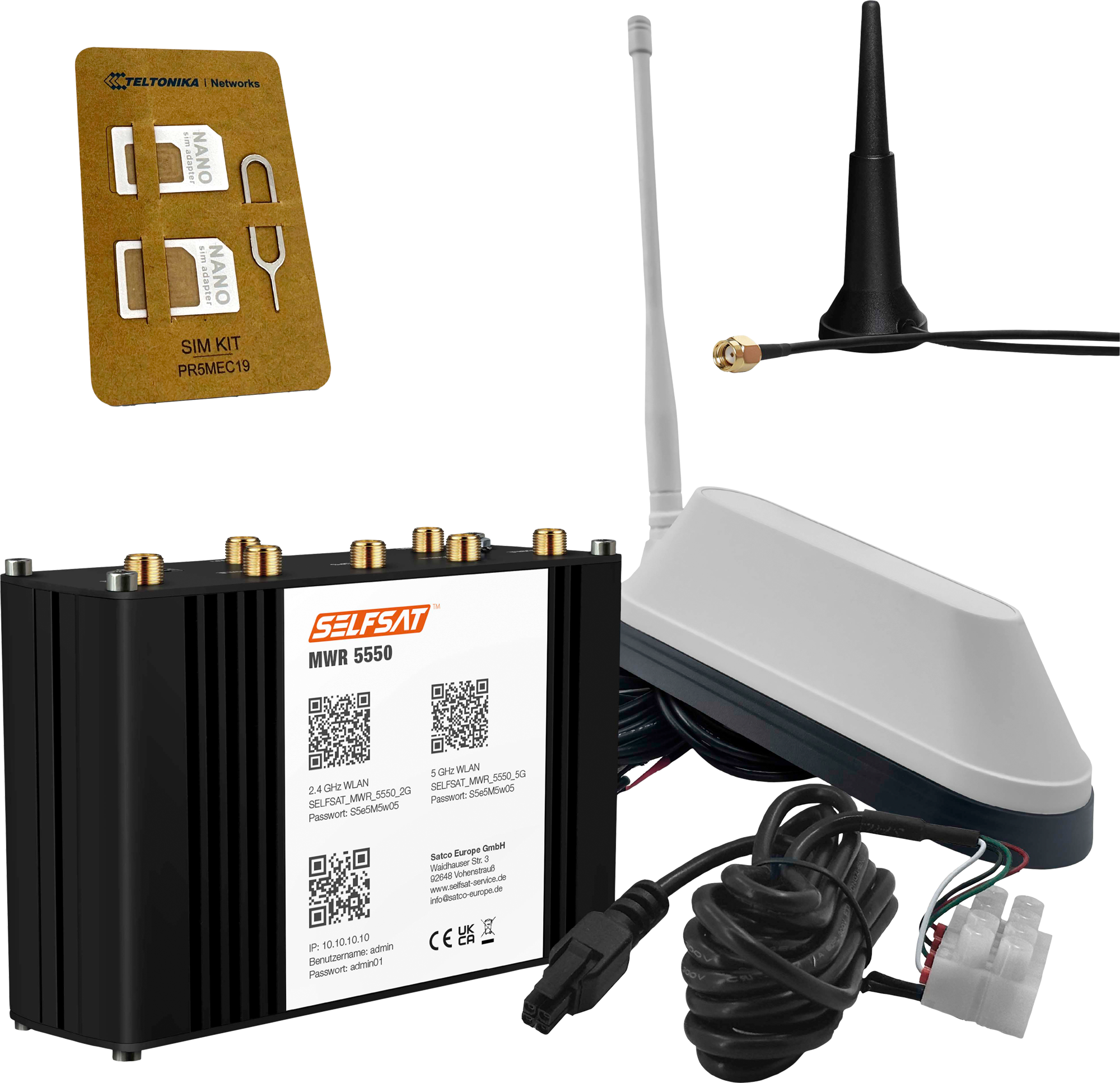 Selfsat MWR 5550 5G Cat 20 WLAN Router mit SHARK 5G Dachantenne weiß bis 3,3 Gbps – Router-Sets