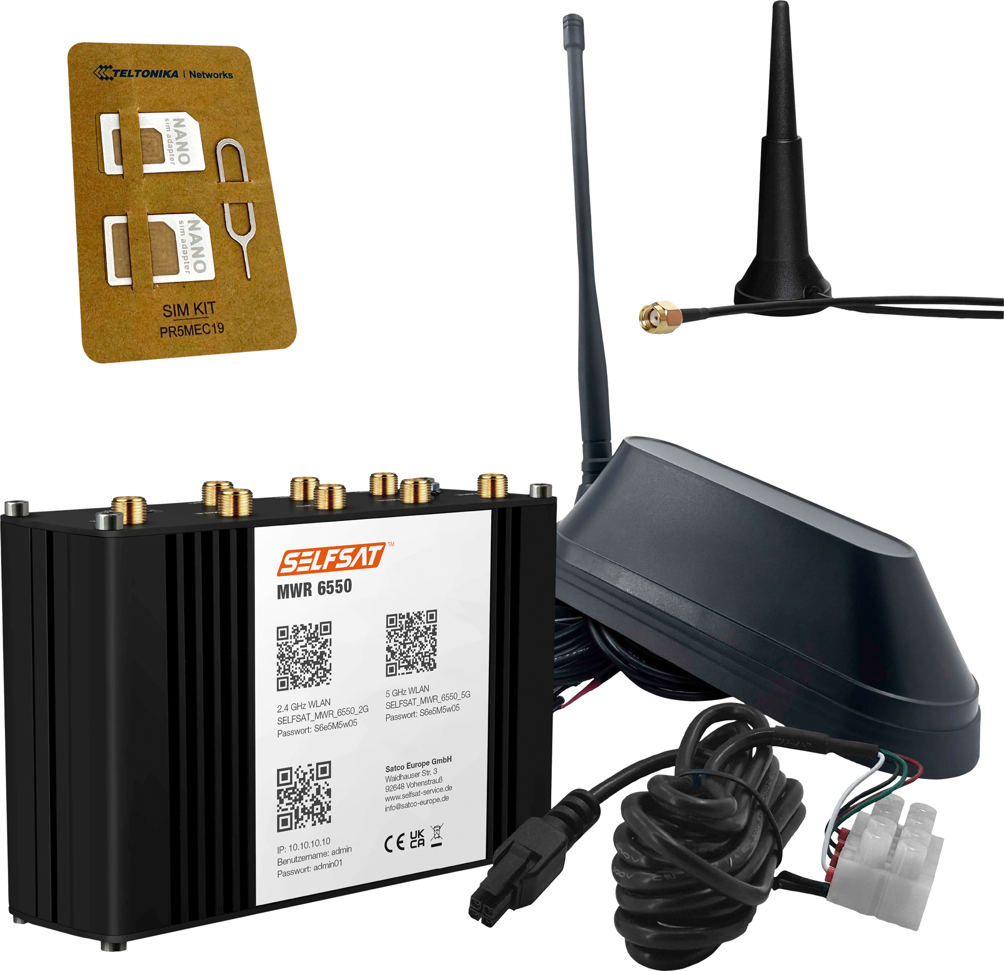 Selfsat MWR 6550 5G Cat 19 WiFi 6 WLAN Router mit SHARK 5G Dachantenne schwarz bis 3,4 Gbps – Router-Sets
