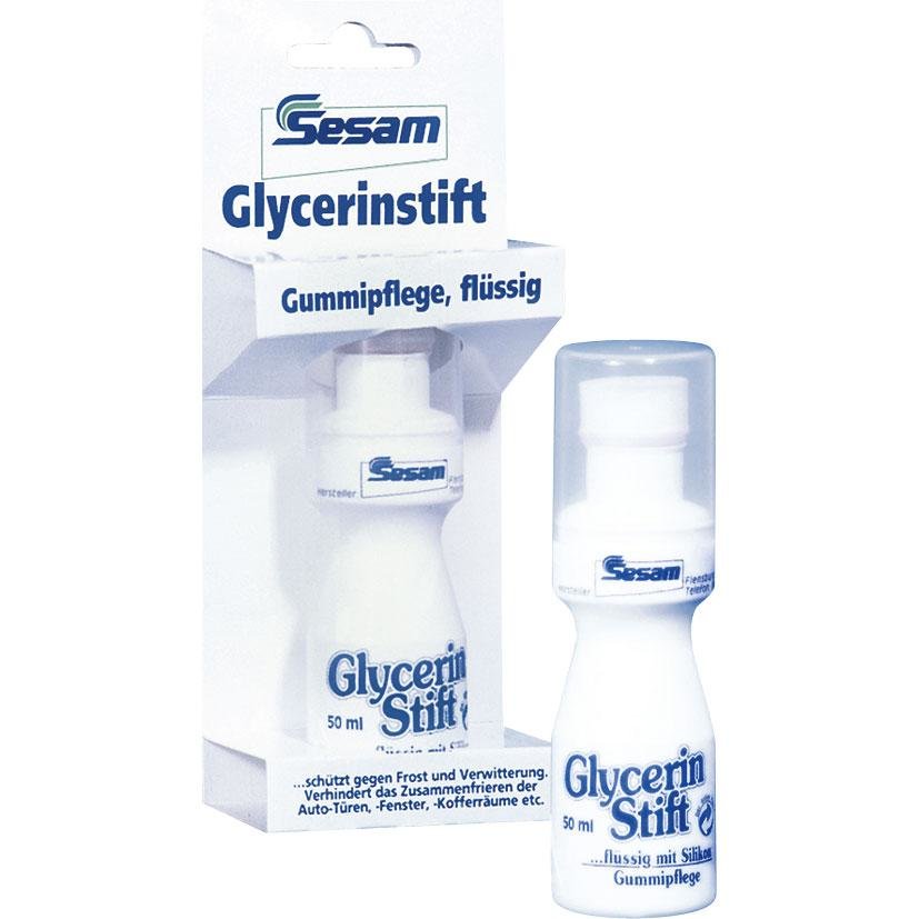 Sesam Glycerinstift Gummipflege für Türdichtungen Der Glycerinstift ist ein flüssiges Produkt, welches bei Kälte aufgetragen werden kann. Er verhindert im Winter das Festkleben von Gummidichtungen an Türen, Cabriodächern, Scheiben und Kofferraumdeckeln. Pflegt das Gummi, hält es geschmeidig und schützt vor Brüchigwerden. Durch den Spezial-Schwammaufträger ist der Glycerinstift besonders anwenderfreundlich. Art Pflege/Reinigung: Pflege, Farbe: transparent, weiß, Füllmenge: 50 ml