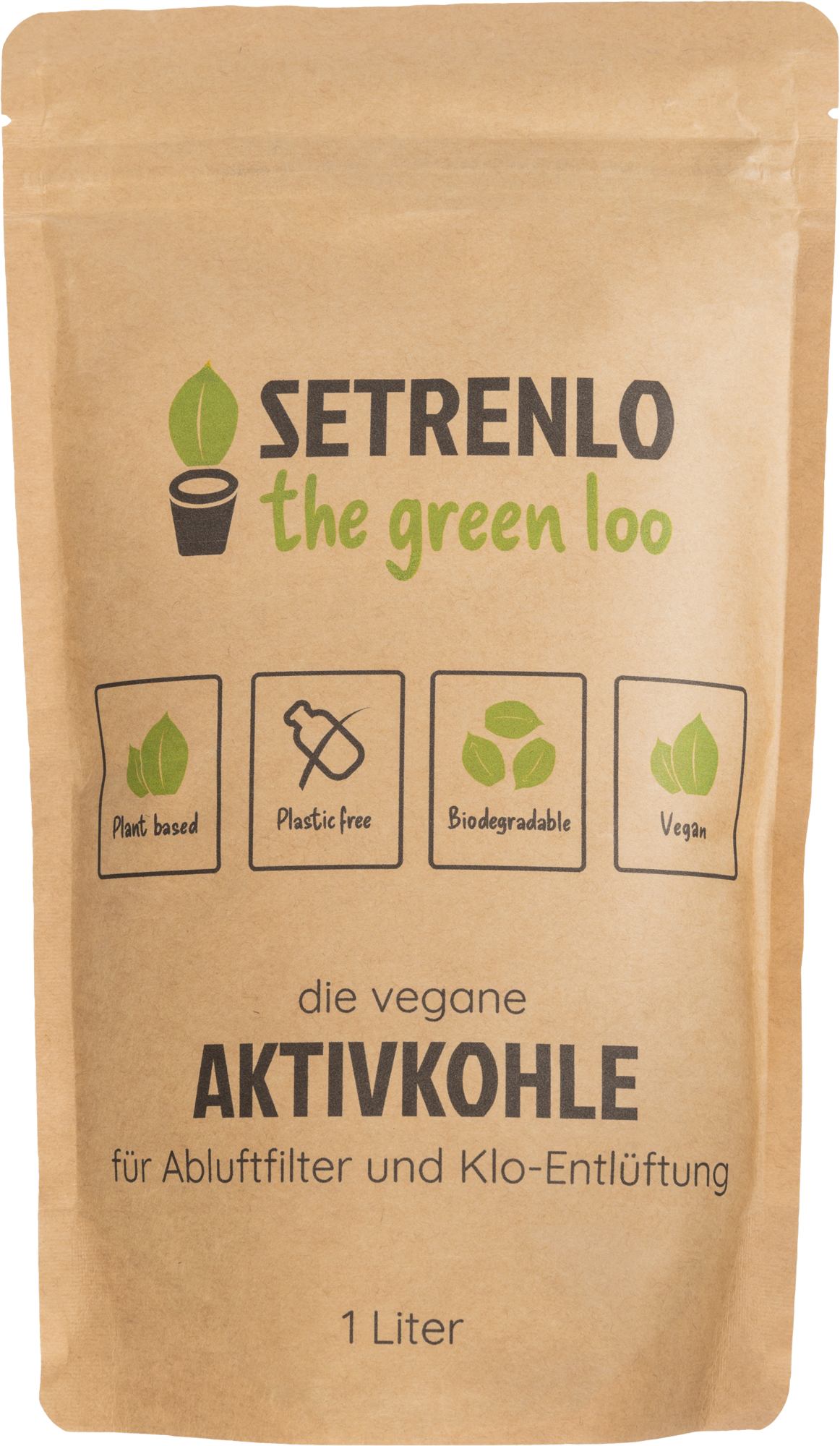 Setrenlo vegane Aktivkohle – natürliche Geruchsbindung für Abluftfilter und Klo-Entlüftung Die vegane Aktivkohle von Setrenlo wird aus nachwachsenden Kokosnussschalen hergestellt und eignet sich ideal zur Befüllung von Abluftfiltern und Klo-Entlüftungen. Das offenporige Granulat bindet zuverlässig unangenehme Gerüche und ist durch seine Körnung von 3,4–4,8 mm besonders staubarm. Eine 1-Liter-Packung reicht für drei Befüllungen der Setrenlo Abluftfilter oder zwei Befüllungen der InRoom-Klo-Entlüftung. Die Aktivkohle sollte einmal jährlich ersetzt werden. Die vollständig plastikfreie Verpackung besteht aus kompostierbaren Naturmaterialien. Details * Vegane Aktivkohle aus Kokosnussschalen * Bindet zuverlässig Gerüche in Abluftfiltern und Klo-Entlüftungen * Staubarm dank idealer Körnung * Reicht für drei Befüllungen (Setrenlo Filter) bzw. zwei Befüllungen (InRoom) * Nur einmal jährlich erneuern * Verpackung plastikfrei und kompostierbar * Hergestellt aus nachwachsenden Rohstoffen Technische Daten * Körnung: 3,4–4,8 mm * Füllmenge: 1 Liter * Maße (L x B x H): 290 x 180 x 40 mm * Gewicht: 0,5 kg * Material: Aktivkohle (vegane Aktivkohle aus Kokosnussschalen) * Verpackung: kompostierbar (Naturmaterialien) Lieferumfang * 1 x 1 Liter Setrenlo vegane Aktivkohle in kompostierbarer Verpackung