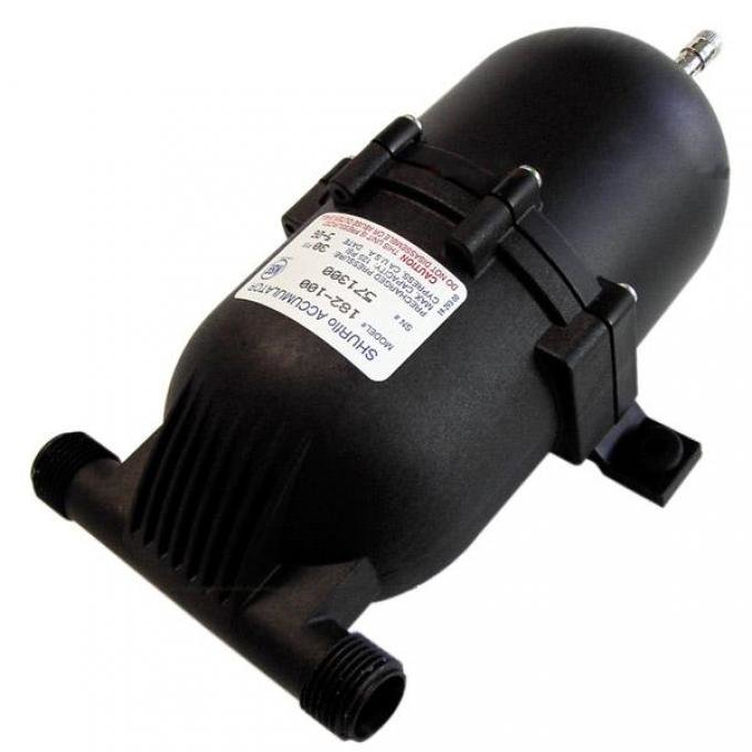 Für alle Druckwasseranlagen. Beim Öffnen des Hahns fließt sofort Wasser, gleichmäßig und leise, ohne Spritzen oder Pulsieren. Bewirkt komfortablere Wasserentnahme, Verlängerung der Lebensdauer der Pumpe, Verkürzung der Ein- und Ausschaltdauer, Schonung der Batterie. In beliebiger Lage montierbar. Eine Luftblase mit konstantem Druck wird von einer flexiblen Membran eingeschlossen. Der Druck der Luftblase ist auf 1,4 bar voreingestellt und kann mit einer Fahrradpumpe verändert werden. Optimale Funktion, wenn dieser Wert nahe dem Wiedereinschaltdruck der Pumpe liegt. Technische Daten: Anschlüsse 1/2“ A. Lochabstand 105 mm Art Wasserpumpen: Druckausgleichsgefäß, Art Wasserpumpen: Zubehör, Maße (LxBxH): 95 x 113 x 226 mm, Volumen: 0,7 l, Druck max: 8,6 bar, Farbe: schwarz, Gewicht: 281 ml