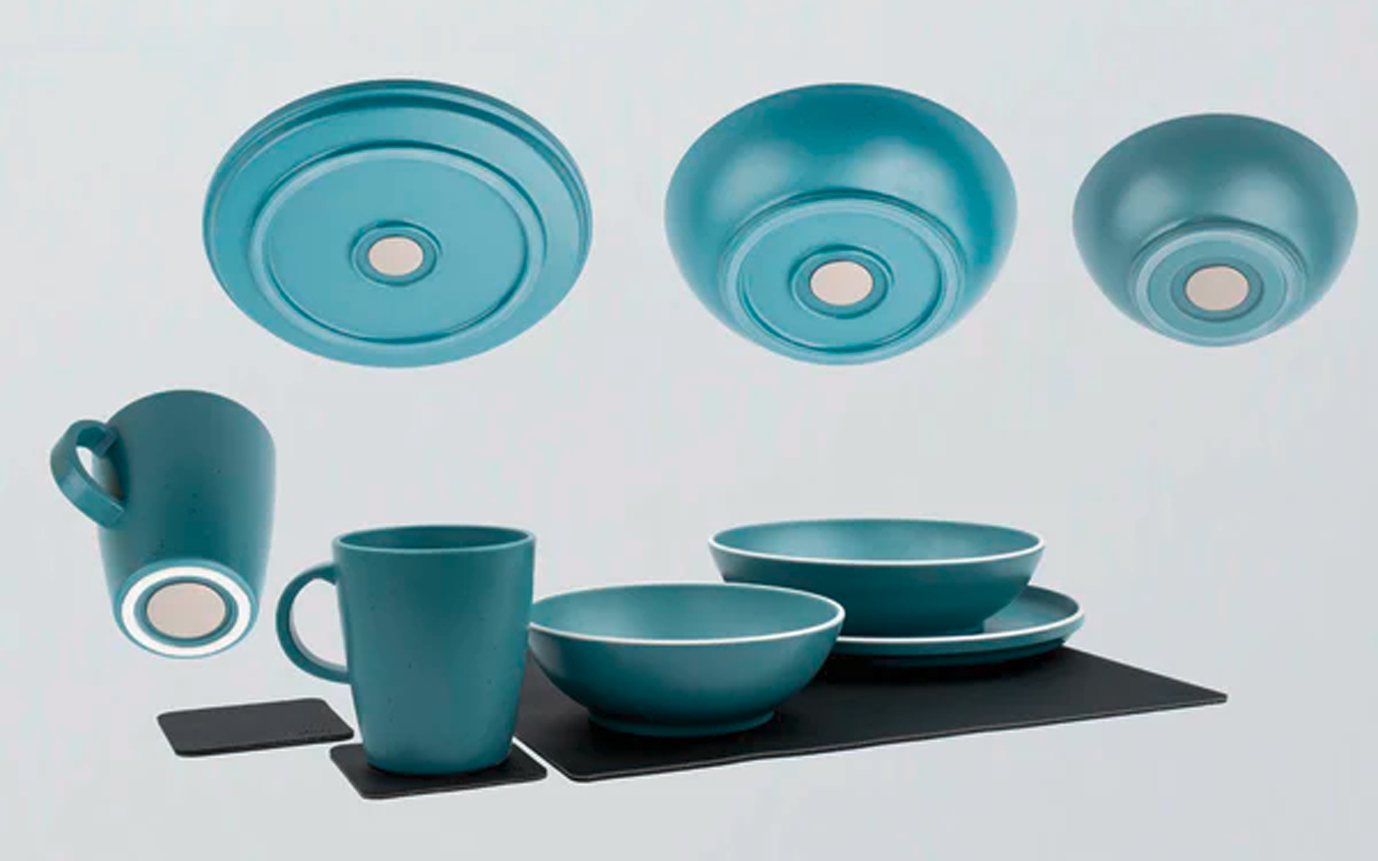 Silwy Magnet-Kunststoff-Geschirrset – sicher, leicht und klapperfrei unterwegs Die hochwertigen Teller sind mit einem handgegossenen Magnet im Boden ausgestattet – für sicheren Halt während der Fahrt. In Kombination mit unserer Metall-Nano-Gel-Matte oder dem passenden Platzset bleiben die Teller zuverlässig an Ort und Stelle. Dank smarter Nano-Gel-Technologie sind beide Unterlagen rückstandslos entfernbar, leicht zu reinigen und wiederverwendbar. Zusätzlich fixieren sich die Teller durch die Magnetkraft auch beim Stapeln – für klapperfreies Verstauen im Schrank. Made in Germany – mit höchstem Qualitätsanspruch. Details: * Sicherer Halt durch integrierten Magnet im Tellerboden – ideal für unterwegs * Kombinierbar mit Nano-Gel-Matte oder Platzset für zuverlässige Fixierung * Rückstandslos entfernbar & wiederverwendbar dank innovativer Nano-Gel-Technologie * Stapelbar & klapperfrei – durch magnetische Verbindung auch im Schrank perfekt verstaut * Hinweis: Nicht Ofen- oder Mikrowellentauglich / es wird Handwäsche empfolen Technische Daten: * Material: Kunststoff * Abmessungen Teller: 2,3 x 25,0 x 25,0 cm * Abmessungen Food-Bowl: 5,2 x 20,0 x 20,0 cm * Abmessungen Bowl: 5,2 x 16,0 x 16,0 cm * Abmessungen Tasse: 10,0 x 9,0 x 9,0 cm * Abmessungen Pad: 0,2 x 8,3 x 8,3 cm * Abmessungen Matte: 0,2 x 27,0 x 36,0 cm * Gewicht pro Set: 2,9 kg Lieferumfang: * 2x Teller * 2x Food-Bowl * 2x Bowl * 2x Tasse * 2x Nano-Gel-Pads * 1x Nano-Gel-Matte Material: Kunststoff, Farbe: Blau