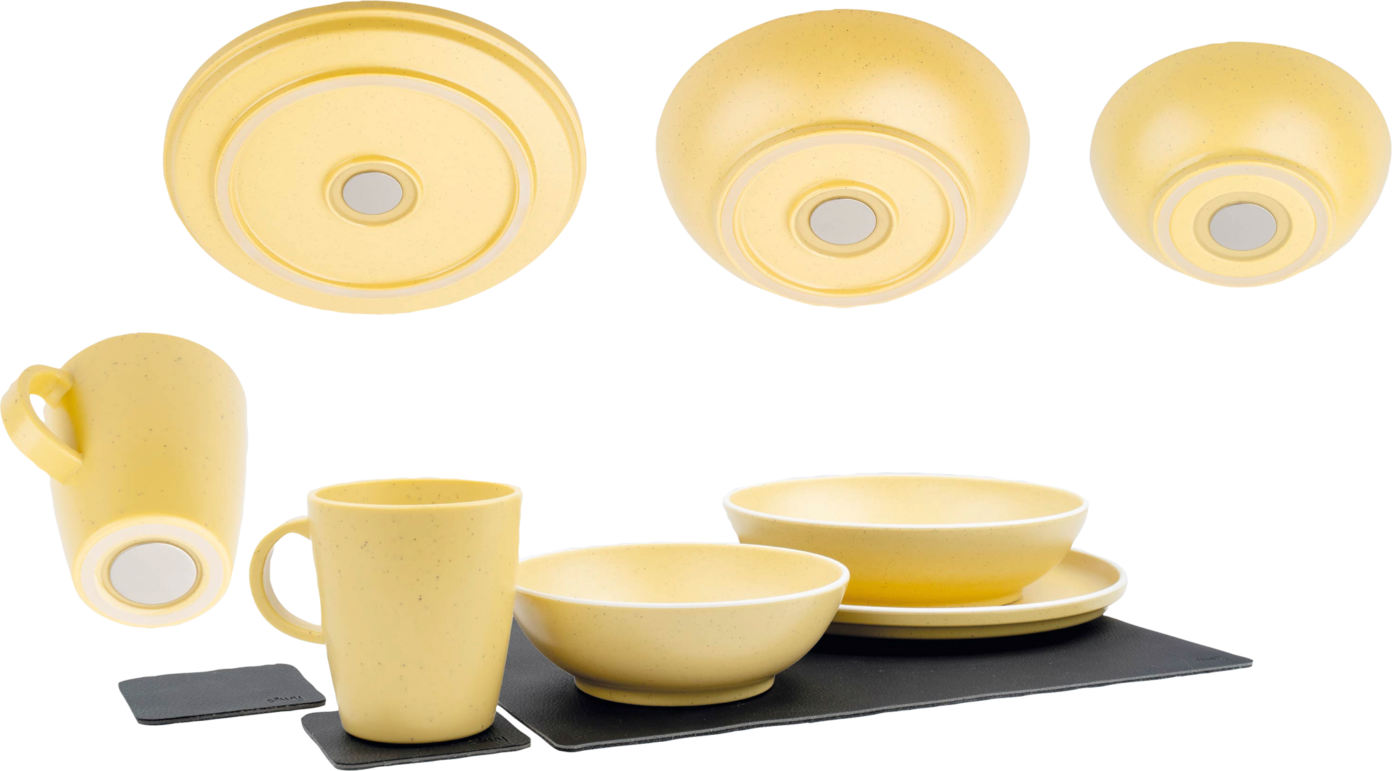 Silwy Brunner Dolomit Magnet-Geschirrset Kunststoff 11-teilig für 2 Personen gelb – Kunststoff und Melamin Geschirr-Sets
