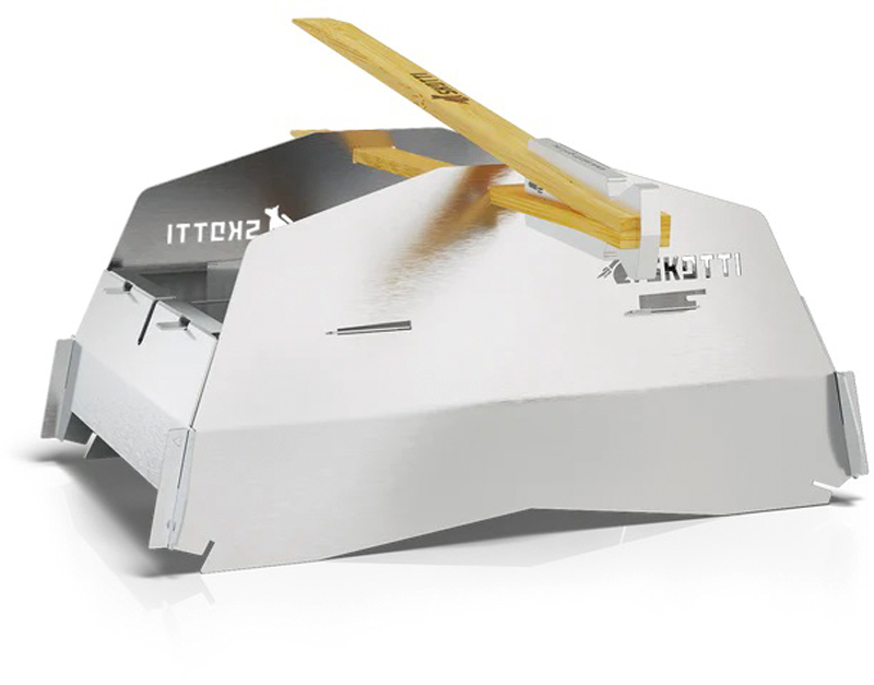 Skotti Cap – die vielseitige Grillerweiterung Die Skotti Cap ist mehr als nur eine Abdeckung für den Skotti Grill. Sie kann flexibel als Windschutz, Drehspießhalter oder Pizzaofen genutzt werden. Je nach Zusammenstellung ermöglicht sie das Grillen von Brot, Pizza, Gemüse oder Fleisch mit längerer Garzeit. Der integrierte Griff dient gleichzeitig als Grillzange und Flaschenöffner. Die flachen Einzelteile lassen sich platzsparend in der mitgelieferten Tragetasche verstauen. Details: * vielseitig nutzbar als Windschutz, Drehspießhalter oder Pizzaofen * Grillzange mit integriertem Flaschenöffner als praktischer Griff * platzsparendes Packmaß, passt in die Tasche des Skotti Grills * wasserfeste und strapazierfähige Tragetasche für einfachen Transport * hochwertiges, rostfreies Material für lange Haltbarkeit Technische Daten: * Material: Edelstahl 304 (rostfrei, langlebig) * Maße (aufgebaut): 31,5 x 22 x 19 cm * Packmaß: 32 x 23 x 20 cm * Gewicht: 1,5 kg Lieferumfang: * 2 Seitenteile, 1 Deckelplatte * 1 Rückseite, 1 Frontseite * 1 Skotti Tongs (steckbare Grillzange mit Flaschenöffner) * 1 Tragetasche (wasserfest und strapazierfähig) * 1 Kurzanleitung Farbe: silber
