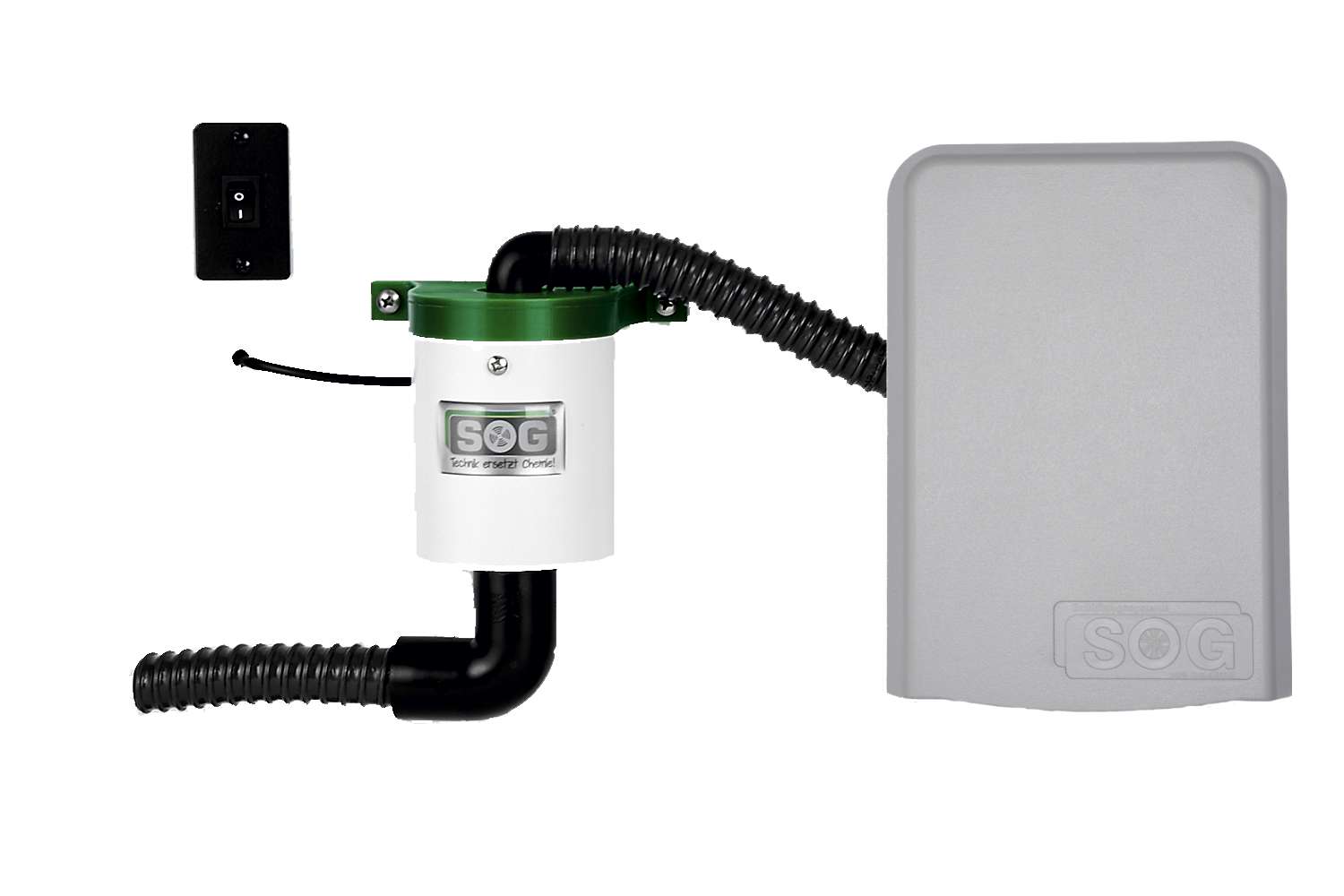SOG TT Bodenvariante WC-Entlüftungssystem für Trocken-Trenntoiletten Mit der SOG TT Bodenvariante vermeidest Du effektiv störende Gerüche in Deinem Freizeitfahrzeug. Die speziell entwickelte Filtereinheit mit integriertem Lüfter leitet Gerüche nahezu geräuschlos über den Boden oder die Serviceklappe nach außen. Der Lüfter kann dauerhaft oder über einen Schalter betrieben werden und verhindert zusätzlich Kondensatbildung. Die kompakte, geräuscharme Bauweise sorgt für ungestörte, geruchsfreie Urlaubstage – innen wie außen. Details: * Für alle Trocken-Trenntoiletten geeignet * Speziell entwickelte Filtereinheit mit Aktivkohle * Lüfterbetrieb dauerhaft oder per Schalter möglich * Kein Geruch, keine Kondensatbildung * Kompakt, leicht und leise * Zwei Entlüftungsvarianten: Boden oder Serviceklappe * Filtergehäuse in verschiedenen Farben erhältlich Technische Daten: * Stromverbrauch: 1,2 Watt * Filterlebensdauer: ca. 1 Jahr * Filtermaterial: Aktivkohle aus organischen Stoffen * Gewicht: gering * Farbe: wählbar (weiß, hellgrau, dunkelgrau, schwarz) * Passend für: alle Trocken-Trenntoiletten Lieferumfang: * Filtereinheit mit integriertem Lüfter * Abluftschlauch mit Anschlussstück * Adapterteile für den Anschluss * Kabelsatz mit Schalter * Kleinteileset zur Montage * Detaillierte Montageanleitung * Filtergehäuse in gewählter Farbe Ausführung: Türvariante, Modell: SOG TT, Passend für: alle Trocken-Trenntoiletten, Farbe: hellgrau