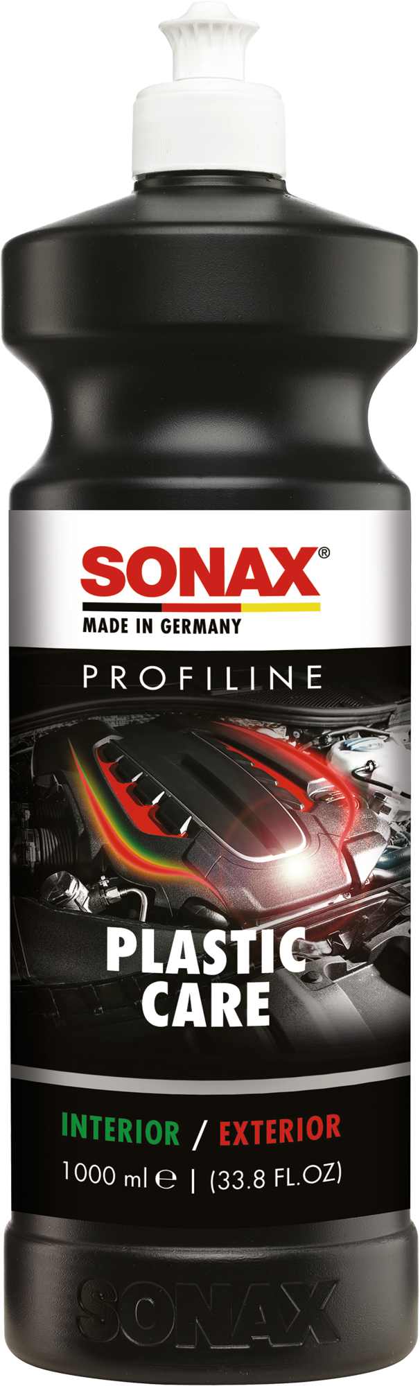 Profiline PlasticCare 1 l – Pflege für Kunststoff mit dezentem Glanz Mit Profiline PlasticCare frischt du Kunststoffe im Innenraum deines Fahrzeugs sichtbar auf. Die lösemittelfreie Pflege kaschiert Vermattungen und feine Kratzer und verleiht einen dezenten Glanz. Auch im Motorraum sorgt sie nach der Wäsche für konservierenden Schutz. Du kannst das Produkt zudem auf Außenflächen anwenden – für lang anhaltenden Schutz im Außenbereich empfiehlt sich ergänzend Profiline Plastic Protectant Exterior. Details * Regeneriert und pflegt Kunststoffoberflächen * Kaschiert Kratzer und Vermattungen * Verleiht dezenten Glanz * Optimal zur Motorraumkonservierung * Auch außen am Fahrzeug anwendbar * Anwendungsbereiche: Innenraum, Motorraum, Fahrzeugaußenflächen * Anwendung mit SONAX Sprayboy, verdünnbar bis 1:2 * Nicht auf heißen Oberflächen anwenden * Vor Frost schützen * Lösemittelfrei Technische Daten * Inhalt: 1 l * Materialverträglichkeit: Kunststoff (Polyvinylchlorid) * Aggregatzustand: Flüssig Lieferumfang * 1 × Profiline PlasticCare 1 l