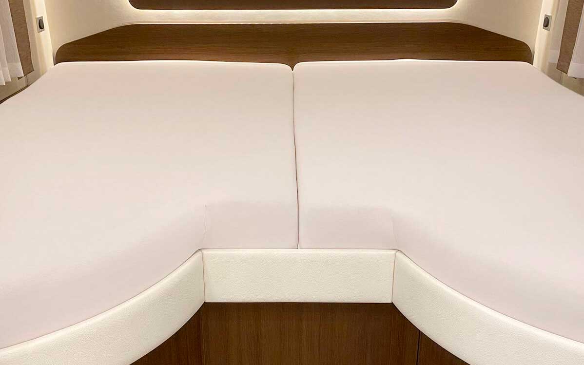 Die Lösung für Betten in Wohnmobilen oder Kastenwagen, die 2 Matratzen mit einem Einschnitt (Einstieg) haben. Z.B. passend für Morelo Palace oder Morelo Loft mit LB, Knaus Kastenwagen usw. Das 2-teilige Set beinhaltet: * 2 Einzelspannbettlaken, passend für die Matratzengröße ca. 90×190 cm – 105 x 205 cm mit der entsprechenden Abrundung/Einschnitt für den Einstieg in der Mitte Es passt für viele Modelle, da die Bettlaken aus einem dafür perfekten, sehr elastischen Jersey Stoff mit 3% Elasthan-Anteil hergestellt werden. Egal, ob der Einstieg wie abgebildet eine größere Rundung hat, oder auch einen eckigen Ausschnitt – die Bettlaken passen! Qualität: * Material: 97% Baumwolle, 3% Elasthan * Materialart: Jersey * pilling- und bügelfrei * ca. 160 g/qm Pflegehinweise: * trocknergeeignet, schonende Trocknung * waschbar bis 60°C Art Lattenroste und Matratze: Zubehör, Gewicht: 800 ml, Matratzenhöhe: 25 cm, Material: 97% Baumwolle, 3% Elasthan, Farbe: sand