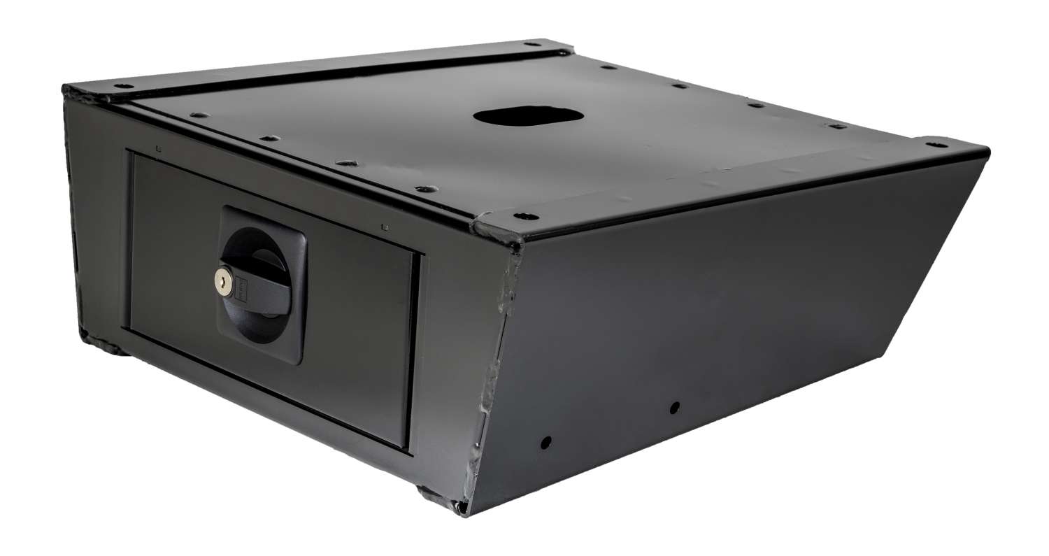Safebox VW T5/T6 für Verwendung mit Drehkonsole. Montage zwischen Fahrzeugboden und Drehkonsole. Art Sitze, Drehkonsolen: Zubehör, Farbe: schwarz, Gewicht: 11 kg, Material: Stahl