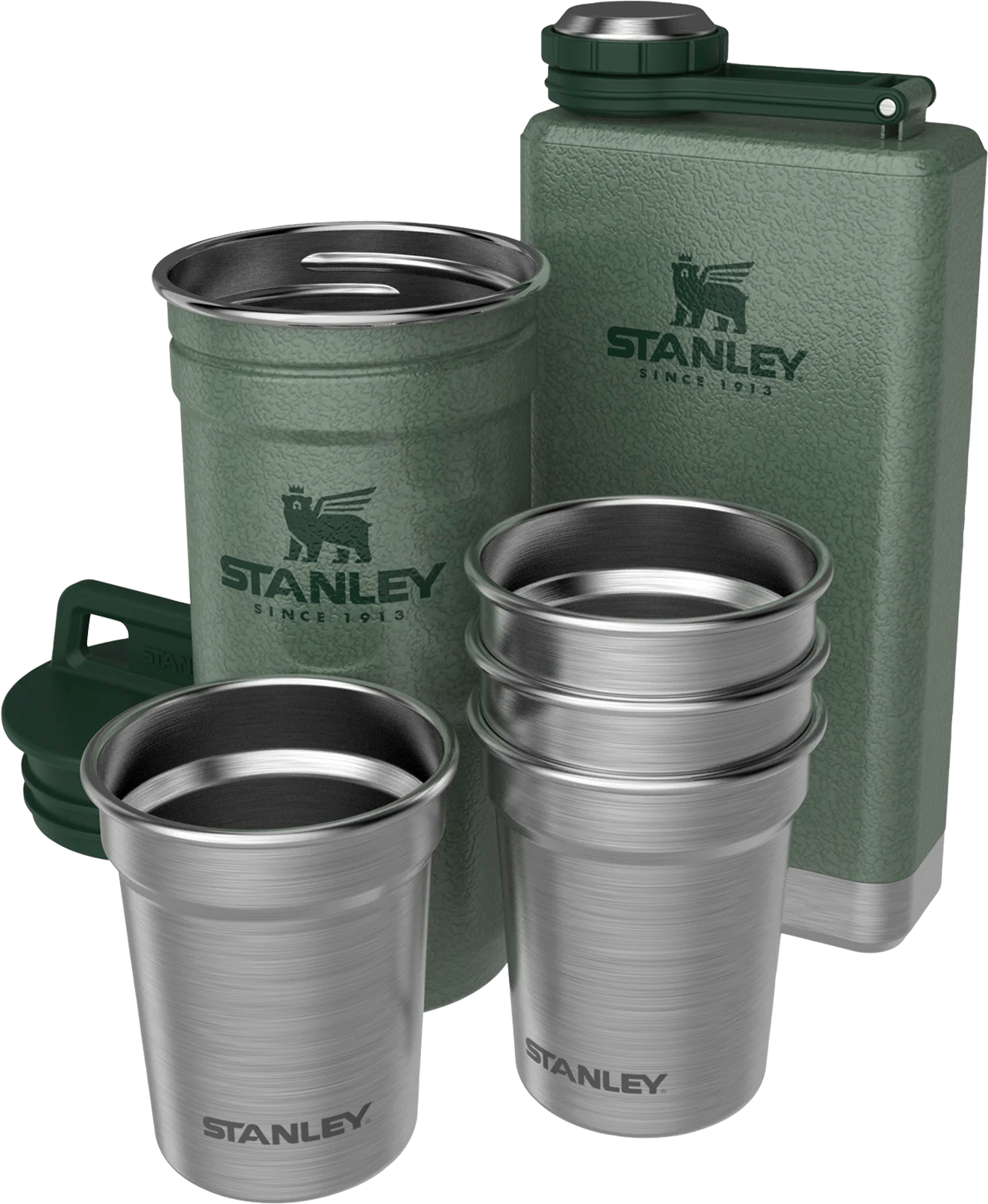 Stanley Flachmann und Shotgläser Set Pre-Party 6-teilig Hammertone Green – Trinkflaschen von Stanley 1913