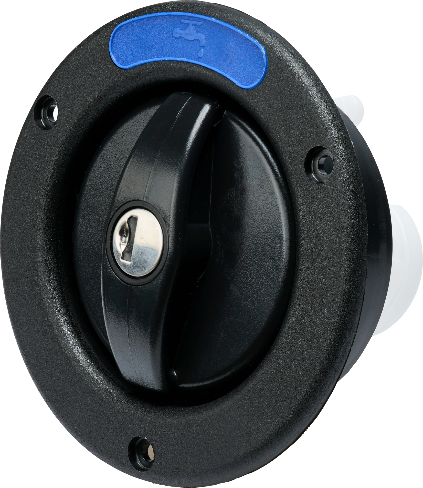 Tankeinfüllstutzen für Ø 40 mm mit Belüftung und Tankdeckelverschluss. Mit Zylinder und 2 Schlüsseln. Art Wasser Zubehör: Versorgungsklappe, Farbe: Schwarz
