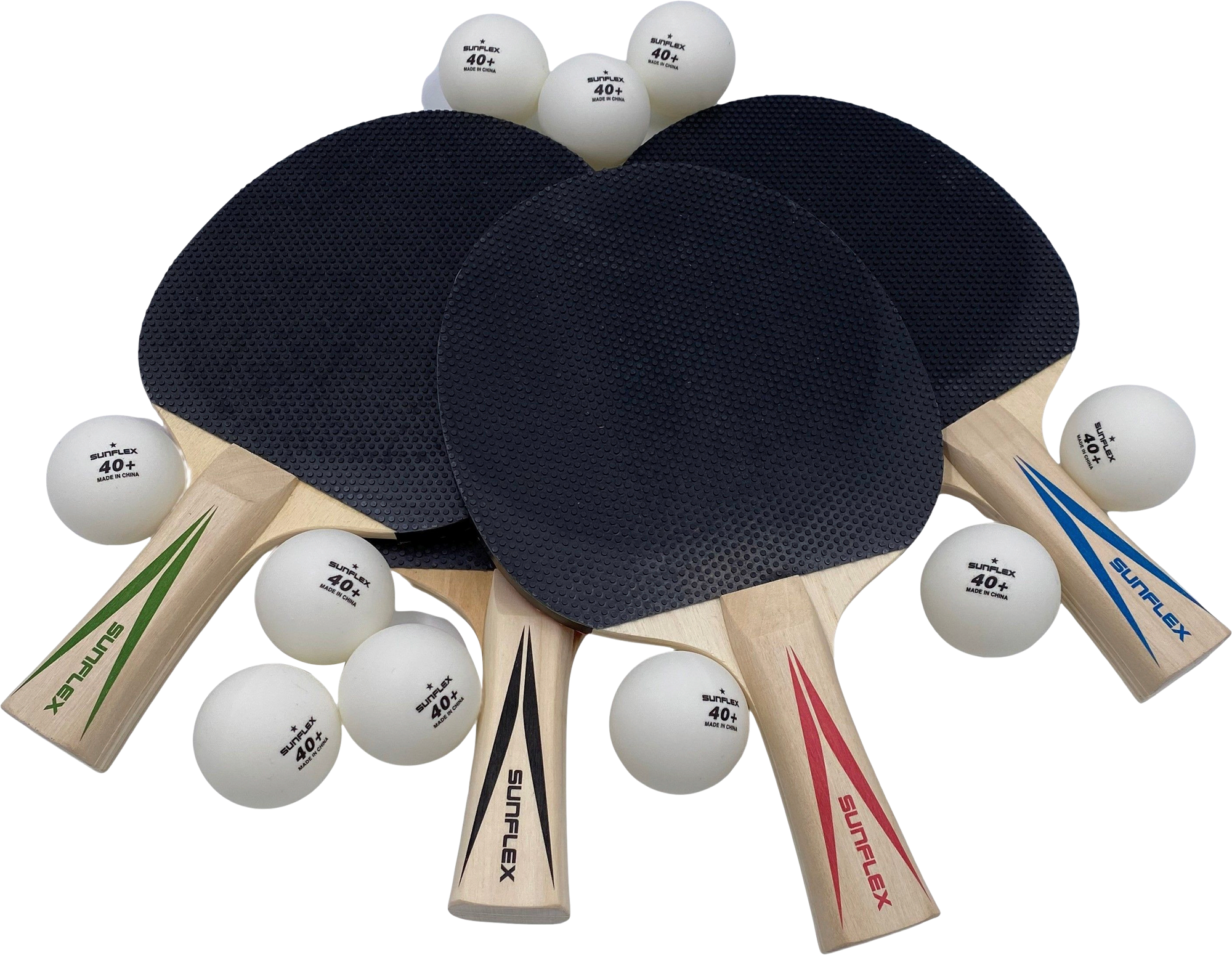 Sunflex sport Rundlauf Set Tischtennis Set mit 4 Schlägern und 10 Bällen – Spielsachen