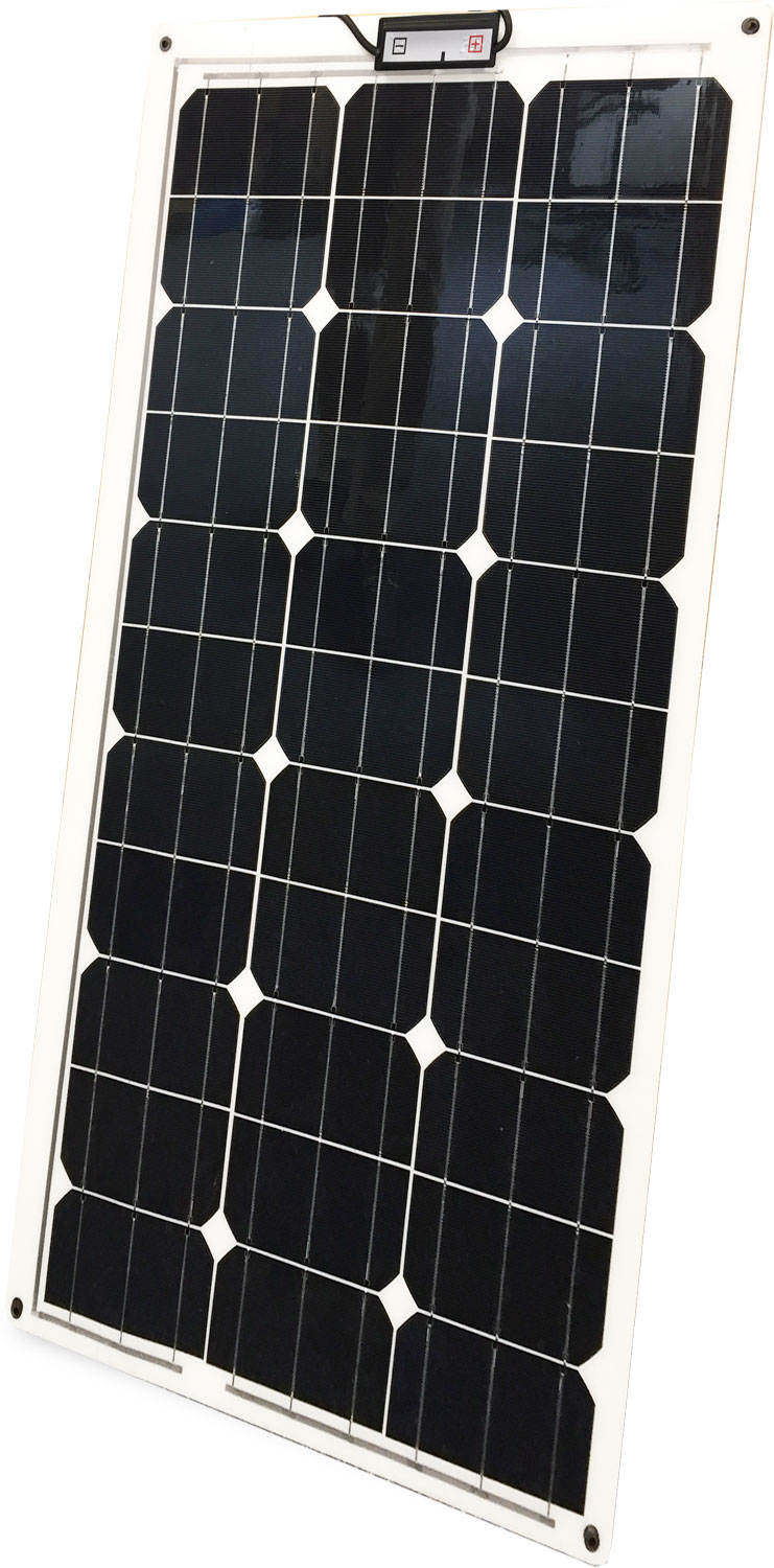 Solarmodul SM L – Laminat Das Solarmodul „SM L“ ist als Laminat, also ohne Rahmen konzipiert. Es ist daher sehr gut für den Einsatz auf Booten und Yachten oder im Wohnmobil geeignet. Der elektrische Anschluss erfolgt über eine versiegelte Anschlussdose mit ca. 1 Meter Kabel. Die speziellen Materialien gewährleisten eine leichte Biegbarkeit des Moduls, das sich so bis zu einem gewissen Grad unterschiedlichen Oberflächen anpassen kann. Es kann flach aufgeklebt oder aufgeschraubt werden. Bei dem Modul wurden Zellen aus kristallinem Silizium eingesetzt, die eine Spitzenleistung erreichen. Die frontseitige Abdeckung besteht aus hochwertigem Kunststoff. Die Rückseite aus Aluminium ist mit der Kunststoffabdeckung dauerhaft verbunden. Laminat-Solarmodul – ohne Rahmen, frontseitige Abdeckung hochwertiger Kunststoff, Rückseite Aluminium, für den flexiblen Einsatz: leicht, klein, dünn, leicht biegbar, bruchfest, seewasserbeständig, 4 Ösen an den Ecken Tragbar: Ja, Typ Solarmodul: Flexibel, Ausführung: SM 85 L, Gewicht: 4,46 kg, Maße (LxBxH): 96 x 53,5 x 0,4 cm, Leistung (W): 85 W, Tagesleistung: 340 Wh