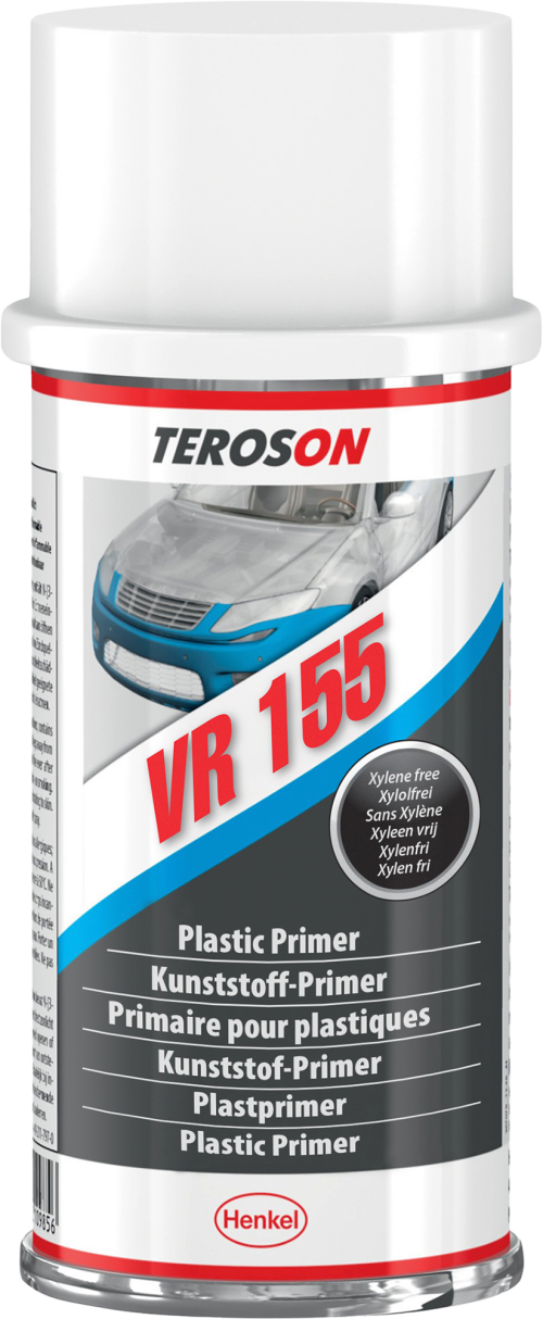Teroson VR 155 – Kunststoff-Primer für zuverlässige Haftung bei Karosseriereparaturen Teroson VR 155 ist ein xylolfreier, lösemittelhaltiger Kunststoff-Primer auf Basis chlorierter Polyolefine und dient dir zur optimalen Oberflächenvorbereitung vor Lackierung, Kleben oder Abdichten. Die weißlich transparente Flüssigkeit verbessert die Haftung auf vielen Kunststoffen, lässt sich im Aerosolverfahren einfach und gleichmäßig auftragen und trocknet schnell. Sie eignet sich für Reparaturklebstoffe, Spachtelmassen und Dichtstoffe, ist frei von FCKW und muss wie ein entzündliches Produkt sicher gehandhabt werden. Das Lösungsmittel kann bestimmte Kunststoffe oder Beschichtungen angreifen, daher solltest du die Verträglichkeit prüfen. Das Produkt ist ein normales Gefahrgut in Form von druckgaspackungen und muss frostgeschützt gelagert werden. Details: * Produktart: Primer für Kunststoffe und Karosseriereparaturen * Chemischer Typ: Chlorierte Polyolefine * Aussehen: Weißliche, transparente Flüssigkeit * Komponenten: Einkomponentig, kein Mischen erforderlich * Viskosität: Flüssig * Enthält kein fckw * Verbessert die Haftung auf PP/EPDM, Polyolefinmischungen, SMC, PA und ABS * Anwendung vor Lackierung, Kleben und Abdichten von Kunststoffteilen * Geeignet für Reparaturklebstoffe, Spachtelmassen und Dichtstoffe * Einfaches Aufsprühen im Aerosolverfahren * Nicht geeignet für reinen Sauerstoff oder stark oxidierende Medien * Verträglichkeit prüfen, da Lösungsmittel einzelne Kunststoffe angreifen kann * Vorreinigung der Teile empfohlen, inklusive Trocknung und Anschleifen mit Korn 120 * Dose vor Gebrauch mindestens 1 minute kräftig schütteln * Dünn und gleichmäßig aufsprühen * Sprühkopf nach Anwendung reinigen * Entnommenes Material nicht zurück in die Originalverpackung geben * Mindestablüftzeit: 5 minutes * Vor Frost schützen * Optimale Lagerung: 5 °C bis 25 °C Technische Daten: * Spezifisches Gewicht bei 23 °C: 0,9 * Trocknungszeit: 5 minutes * Festkörpergehalt: 4,5 % * Betriebstemperatur: -40 bis 80 °C * Anwendungstemperatur: 15 bis 30 °C Lieferumfang: * 1x Teroson VR 155 Kunststoff-Primer 150 ml Sprühdose Art Klebstoffe, Dichtstoffe: Hybrid-Klebstoff, Art Pflege/Reinigung: Reinigung, Farbe: Transparent