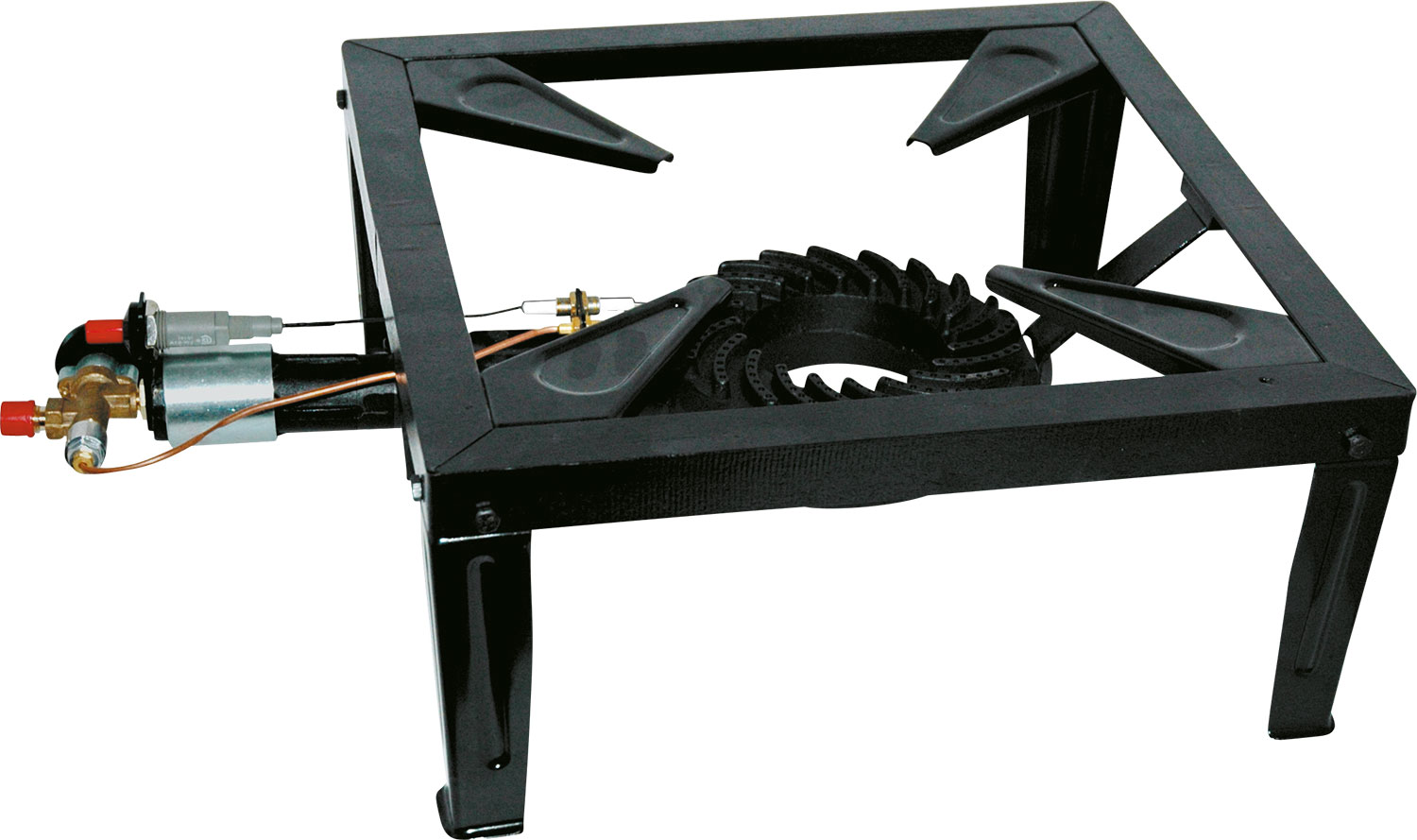 Hockerkocher – Komplett Set. Für Eintöpfe, Suppen, Gulasch, Glühwein und vieles mehr. Bestens geeignet zum Erhitzen und Anbraten in der Pfanne oder im Wok. Lieferumfang: Hockerkocher mit einem windstabilen Brenner aus massivem Gusseisen und Gestell aus Stahlblech. Niederdruckschlauch 150 cm G1/4“ L und 50 mbar Gas-Regler. Artikel ist mit Zündsicherung und ohne Zündsicherung erhältlich! Zum Anschluss an 5 kg und 11 kg Propangasflaschen. Art Kocher: Gaskocher, Farbe: schwarz, Anzahl-Brennstellen: 1 Flamme, Ausführung: mit Zündsicherung, Gasdruck: 50 mbar, Gewicht: 5 kg, Leistung: 7,5 kW, Gasverbrauch max.: 452 g/h, Piezo Zündung: Ja, Material Gehäuse: Stahl, Maße (BxHxT): 55 x 18 x 39 cm, Zündsicherung: Ja