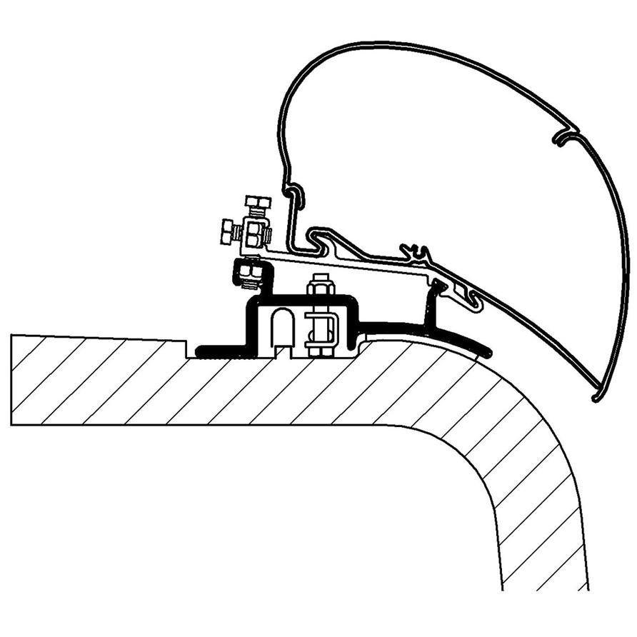 Montage-Adapter-System 2: auf abgerundeten Dächern speziell durchgehend entwickelte Adapterschienen. Vorteil: die Markise passt sich perfekt dem Fahrzeugprofil an. Art Markisenzubehör: Markisen-Adapter, Ausführung: bis Bj. 06/2006, Farbe: silber