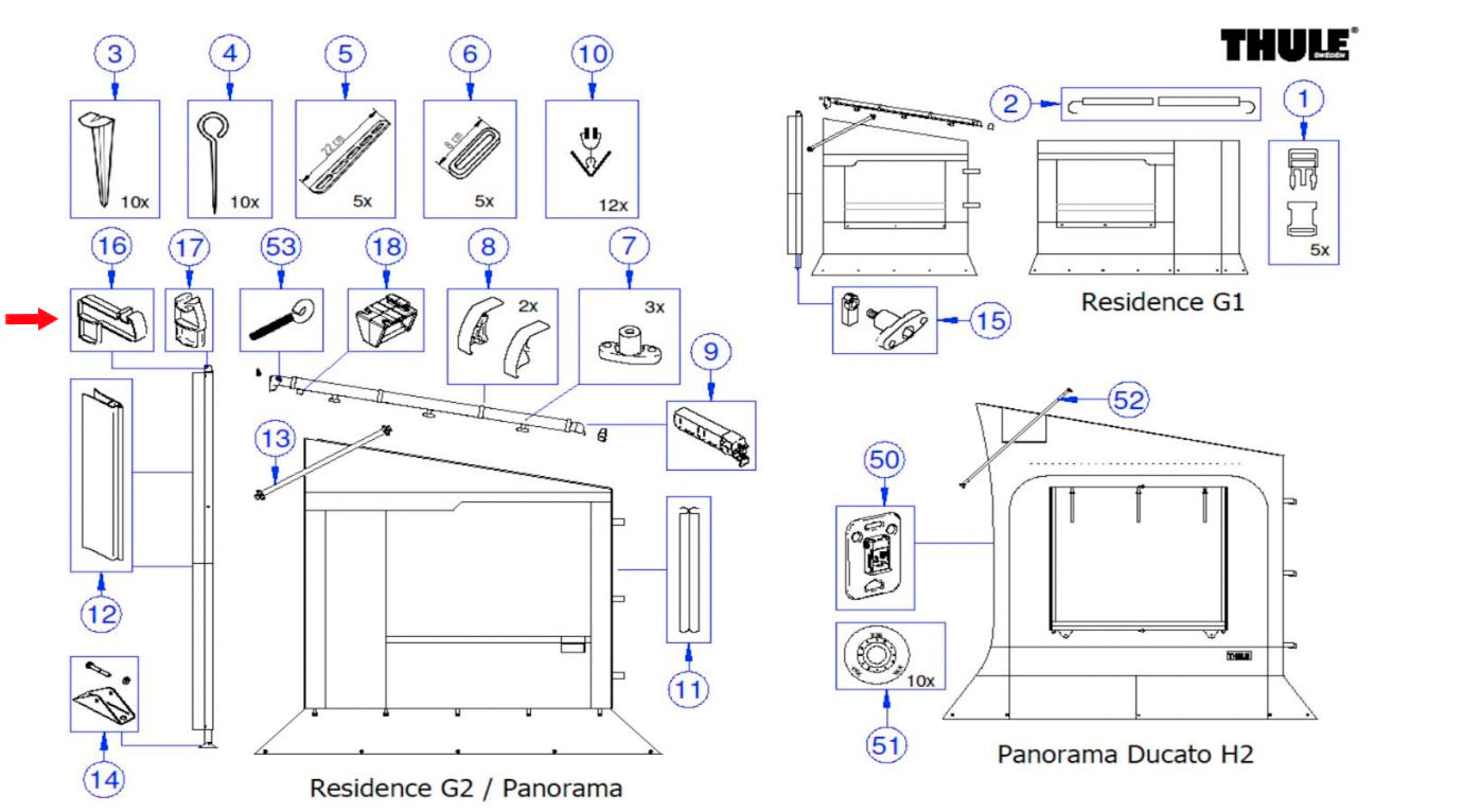 Mast-Endstück passend zu Thule Safari Residence G2 / Panorama 8000 Es handelt sich um Pos.16 auf dem Bild
