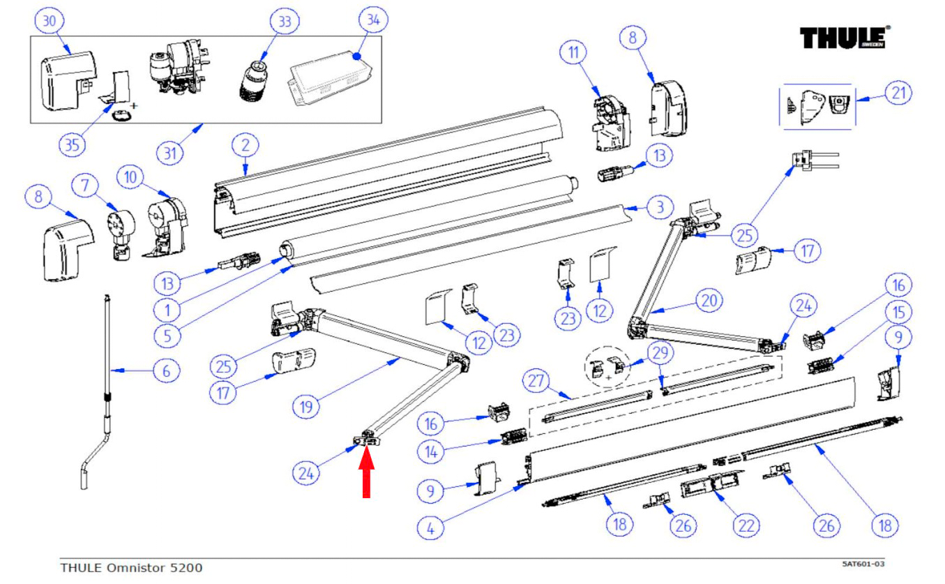Gelenkarmbefestigungs-Satz vorne passend zu Thule Omnistor 5200 Satz: links und rechts