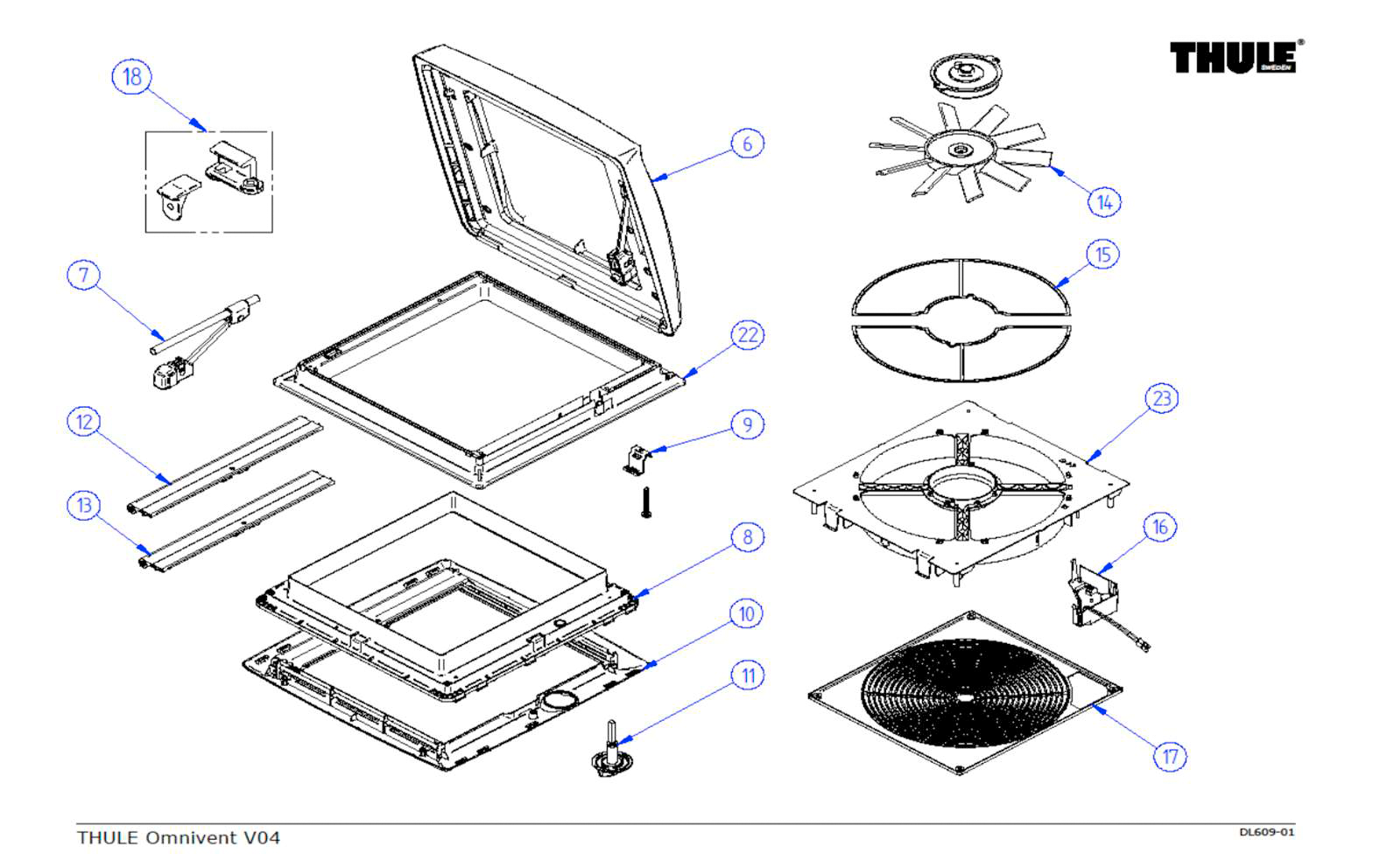 Thule Rollo und Rahmen passend zu Vent ab Bj. 2005 – Ersatzteile Thule Dachhauben