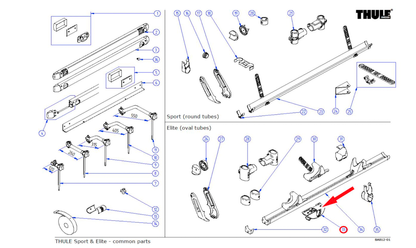 Thule Schienen-Gleiter passend zu Omni-Bike Elite / Lift Es handelt sich um Pos.33 auf dem Bild