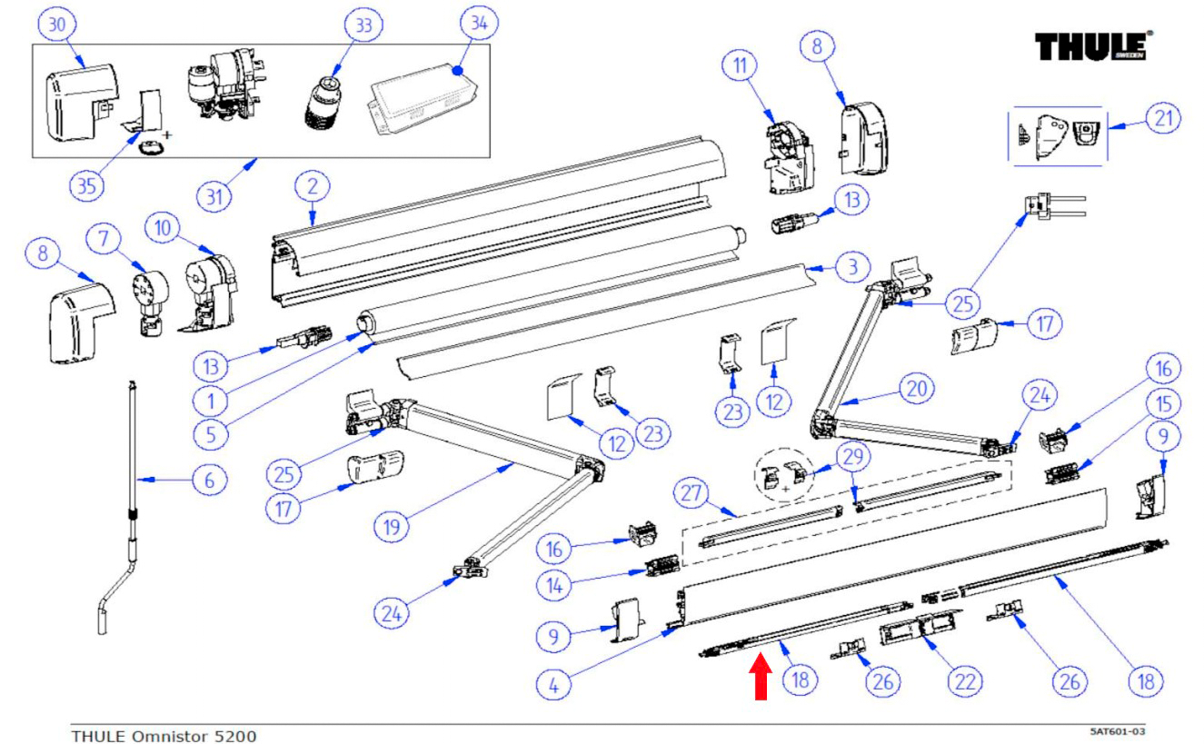 Stützfuß (162cm) ab Markisenlänge 3,5m passend zu Thule Omnistor 5200