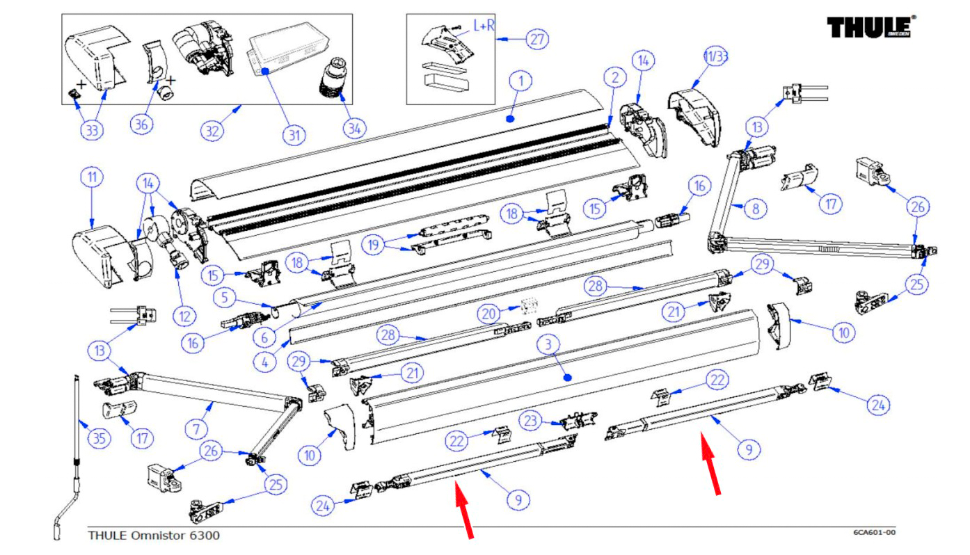 Thule Stützfuß ab Markisenlänge 3,5m passend zu Omnistor 6300 L = 162 cm Es handelt sich um Pos.9 auf dem Bild