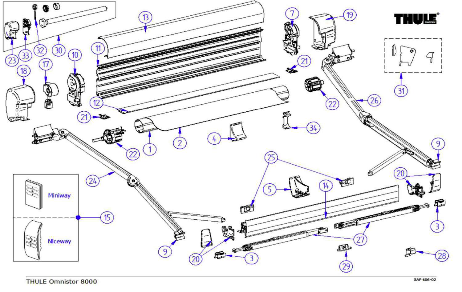 Tuchrollenendkappen (ø52mm) passend zu Thule Omnistor 5003 ab Markisenlänge 4 m Satz: links und rechts