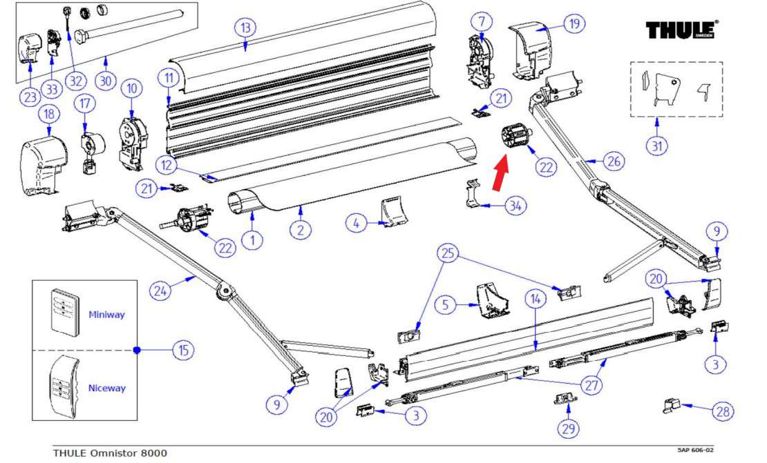 Tuchrollenendkappen-Satz Thule Omnistor 8000 Satz: links und rechts