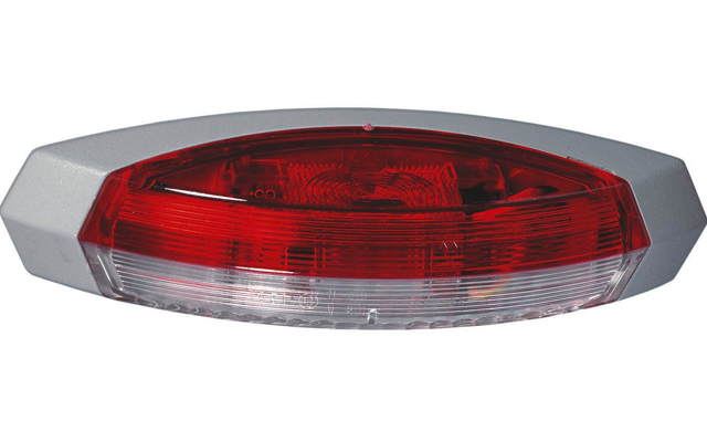 Mit grauer Grundplatte. Glühlampen im Lieferumfang enthalten. Art Leuchten: Umrissleuchte, Aufbauhöhe: 2,8 mm, Leuchtmittel inklusive: Ja, Rückstrahler: Nein, Version Leuchte: links, Maße (LxB): 12,2 x 3,9 mm, Farbe: rot, weiß