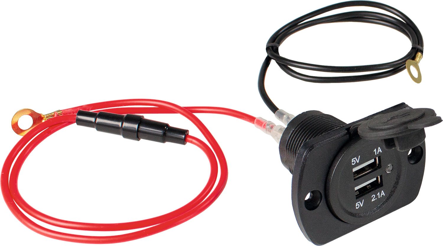 USB 2fach Einbaudose Caravan in schwarz * 2 USB Dosen mit Schutzkappe * 1x 5V/1A und 1x 5V/2,1A * mit 0,6m Massekabel und Pluspol (mit Glassicherung) mit Ringösen * Eingangsspannung 12V DC Art Kabel, Kupplung, Schalter und Stecker: Sonstiges, Maße (LxBxH): x x 0 cm