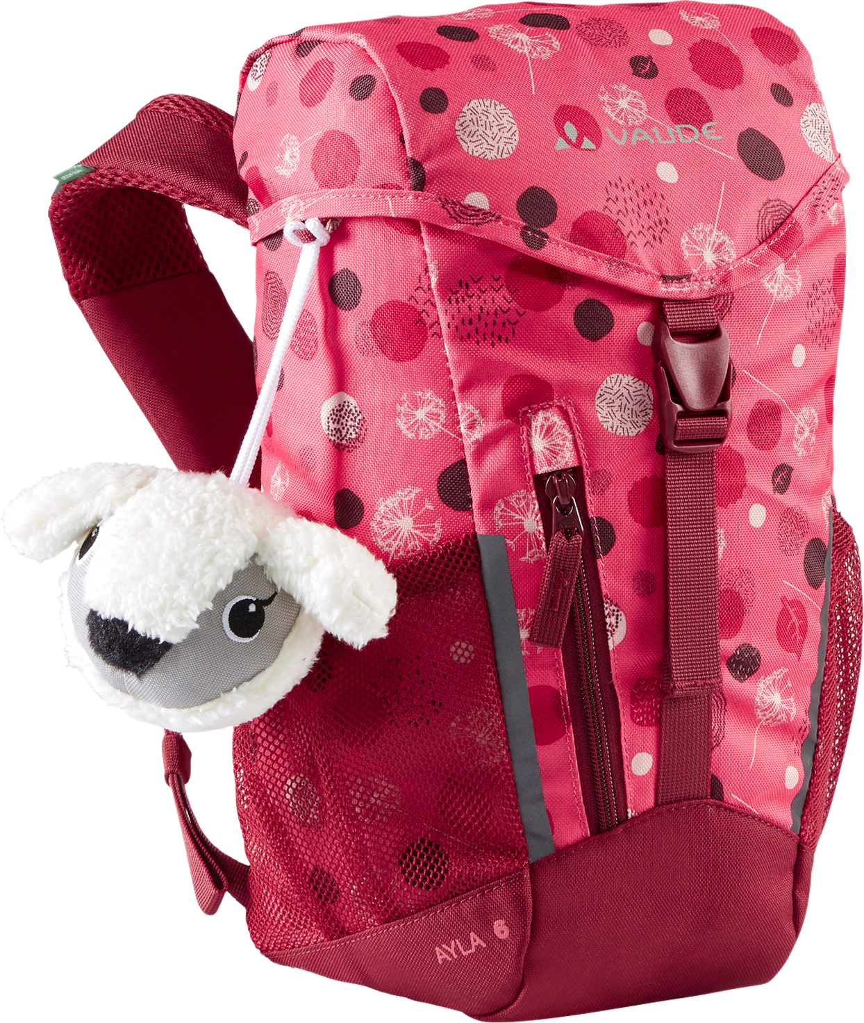 Der Ayla 6 ist unser Nachwuchs-Liebling. Seine weich gepolsterten EasyFit-Schultergurte lassen sich verrutschsicher vor der Brust über Kreuz tragen. Dazu kommt ein schneller Zugriff auf das Hauptfach, in dem alles Platz findet, was unterwegs dabei sein soll. Schaf „Flocki“ ist auf jeden Fall immer dabei – der kleine Ball macht gute Laune und ist fester Bestandteil im Ayla 6. Praktisch sind auch die leicht bedienbare Schnallen, reflektierende Elemente und seitlichen Stretchfächer für das Getränk oder kleine Snacks. Damit ist er ein echter Allrounder und für den Weg in den Kindergarten genauso geeignet wie für den Ausflug zur Oma oder die erste kleine Wandertour. Dieser Kinderrucksack besteht anteilig aus Recycling-Material und ist mit Eco Finish umweltfreundlich wasserabweisend ohne Fluorcarbone (PFC) hergestellt. Das VAUDE Green Shape-Label steht für ein umweltfreundliches, funktionelles Produkt aus nachhaltigen, bluesign-zertifizierten Materialien. Details: * Kleinkindgerechter Rucksack mit innovativem Tragesystem * Komfortabler Sitz * Reflektierende Elemente * Klimaneutral kompensiert; umweltfreundliche Herstellung * Easy Fit Schultergurte sind für kleine Kinder leicht zu bedienen * Kleiner, abnehmbarer Spielball „Flocki“ * Front-Tasche mit Reißverschluss * 2 Netz-Außentaschen * Reflektierende Elemente * Kinderleicht zu öffnende Schnallen * Leicht zu greifende Reißverschlüsse * Namensschild innen Art Rucksäcke: Tagesrucksack, Gewicht: 230 g, Material: Hauptstoff : 100% Polyester (recycelt), 600D / PU coated / plain weave, Futter : 100% Polyamid, 200 D Polyurethane coated, Volumen: 6 l, Farbe: dunkelrot, Maße (LxBxH): 30 x 20 x 16 cm
