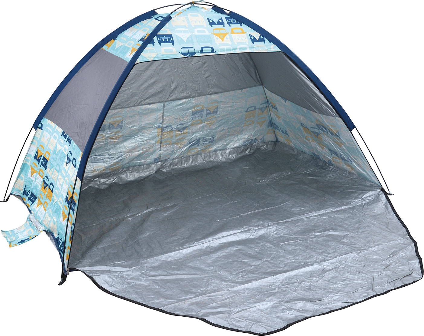 Strandmuschel mit Sonnenschutz (UV 50) für 2 Personen im kultigen VW Bus Design. Die Strandmuschel lässt sich super schnell aufbauen und bietet den perfekten Sonnen- und Windschutz am Strand, See oder im eigenen Garten. Jede Muschel enthält eine Tragetasche und Heringe, sowie vorangebrachte Sandtaschen. Maße: 210 x 120 x 120 cm Packmaß: 11 x 68 x 11 cm Farbe: blau / bunt, Gewicht: 1,3 kg, Lieferumfang: Strandmuschel, Heringe, Gestänge, Material: 100% Polyester (170T Polyester, silber beschichtet), Material Boden: 100% Polyester (170T Polyester, silber beschichtet), UV-Schutz: Ja, Maße (LxBxH): 210 x 120 x 120 cm, Packmaß (LxBxH): 68 x 11 x 11 cm