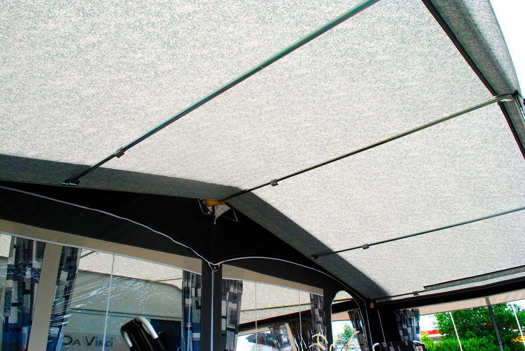 Sonnenvordach Patio Speziell entwickelt für den Saisoncamper! Das neue Walker Patio ist ein Sonnenvordach mit 235 cm Tiefe und wurde speziell entwickelt für den Saisoncamper der sein Vordach von Frühjahr bis Herbst nutzt. Das Stahlgestänge hat einen Durchmesser von 25 mm und verfügt über extra Dachstangen. Alle Tunnels (Hohlsäume) für die Zeltstangen sind mit Reißverschlüssen ausgestattet und ermöglichen so eine bequeme Montage. Nach dem entfernen der Seitenwände kann der Dachteil des Sonnenvordaches bei schlechtem Wetter sogar aufgerollt werden! Das Gestänge kann dann einfach stehen bleiben. Zum Standardlieferumfang des Patio gehören 2 Seitenwände mit Fenster. Diese sind durch Reißverschlüsse abnehmbar. Powergrips, Sturmgurte und Gardinen für die Seitenwände sind gegen Aufpreis erhältlich. Das Patio wird serienmäßig geliefert mit Keder und 3 Dachhaken zur Befestigung direkt an den Wohnwagen. Die Seitenwände können Sie nicht benützen beim Patio direkt am Wohnwagen. Die Seitenwände werden in den Farben des Vorzeltes geliefert: * WS-1 – in den Farben Walker Allure, Atrium, Palladium * WS-4 – in den Farben Walker Signum und Atrium – iceblue * WS-5 – PVC / in den Farben Walker Concept * WS-6 – in den Farben Walker Pioneer All Season * WS-7 – in den Farben Walker Fusion II Details * Packmaß: 117 x 17 x 30 (L x B x H) * AB Göße (Abstand vom Mittelstück (A) zum Eckstück (B) des Vorderdaches vom Vorzelt): Umlaufmaß Passender AB Abstand 780-810 178 cm 796-825 178 cm 810-840 193 cm 826-855 193 cm 840-870 208 cm 856-885 208 cm 870-900 223 cm 886-915 223 cm 900-930 238 cm 916-945 238 cm 930-960 253 cm 946-975 253 cm 960-990 268 cm 976-1005 268 cm 990-1020 268 cm 1006-1035 268 cm 1020-1050 268 cm 1036-1065 268 cm 1050-1080 268 cm Art Markisen und Dächer: Vordach und Sonnensegel, Art Sonnensegel/Vordächer: Vordach, Material: 100 % Polyester Ten Cate, Tiefe: 230 cm, Gewicht: 34 kg, Umlaufmaß: 780 – 810 cm