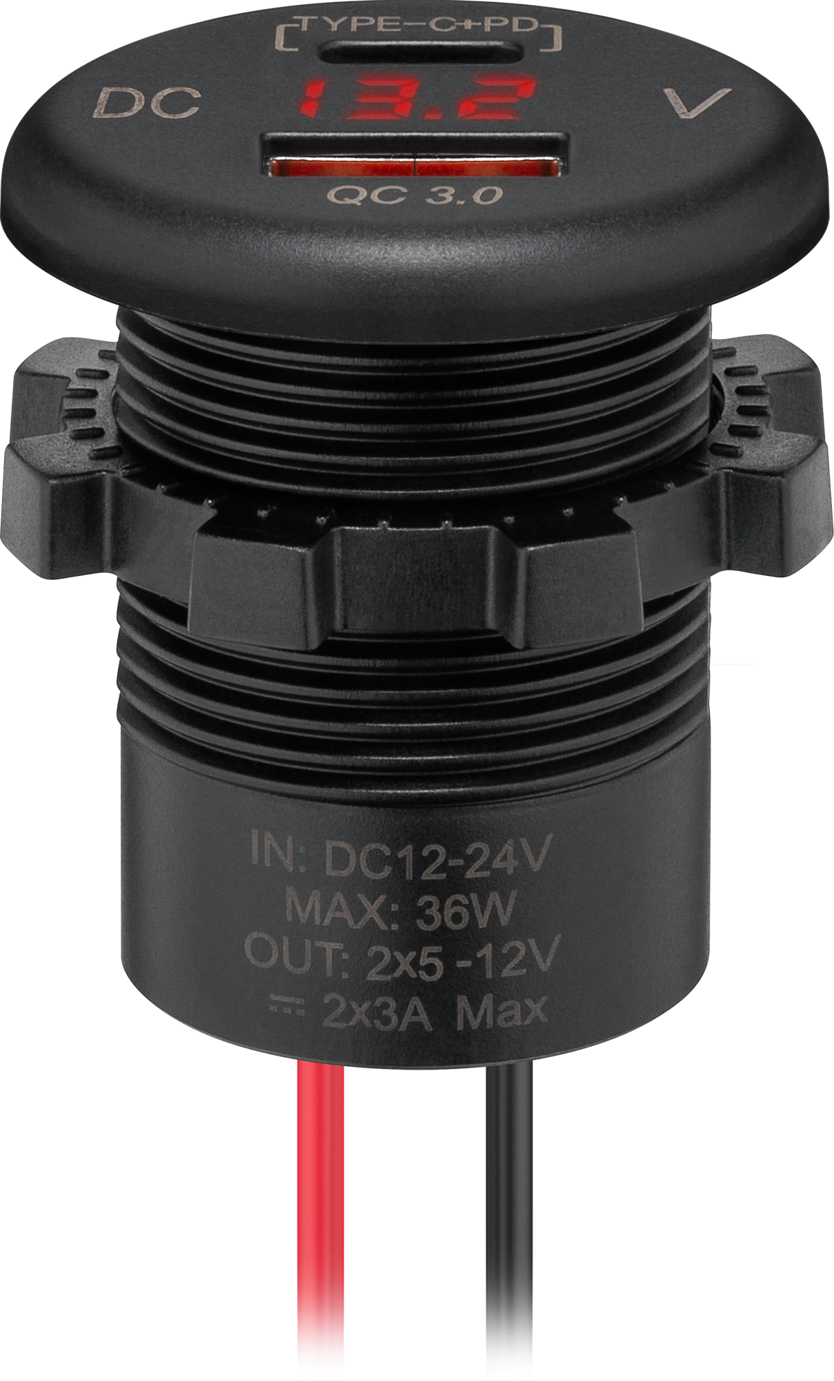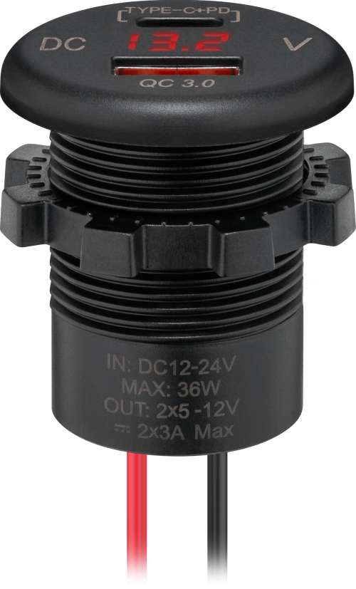 Wentronic Dualer Einbaucharger USB-A und USB-C mit Schnellladetechnik und LED- Anzeige 12 V / 24 V – 12 / 24 V Einbausteckdosen