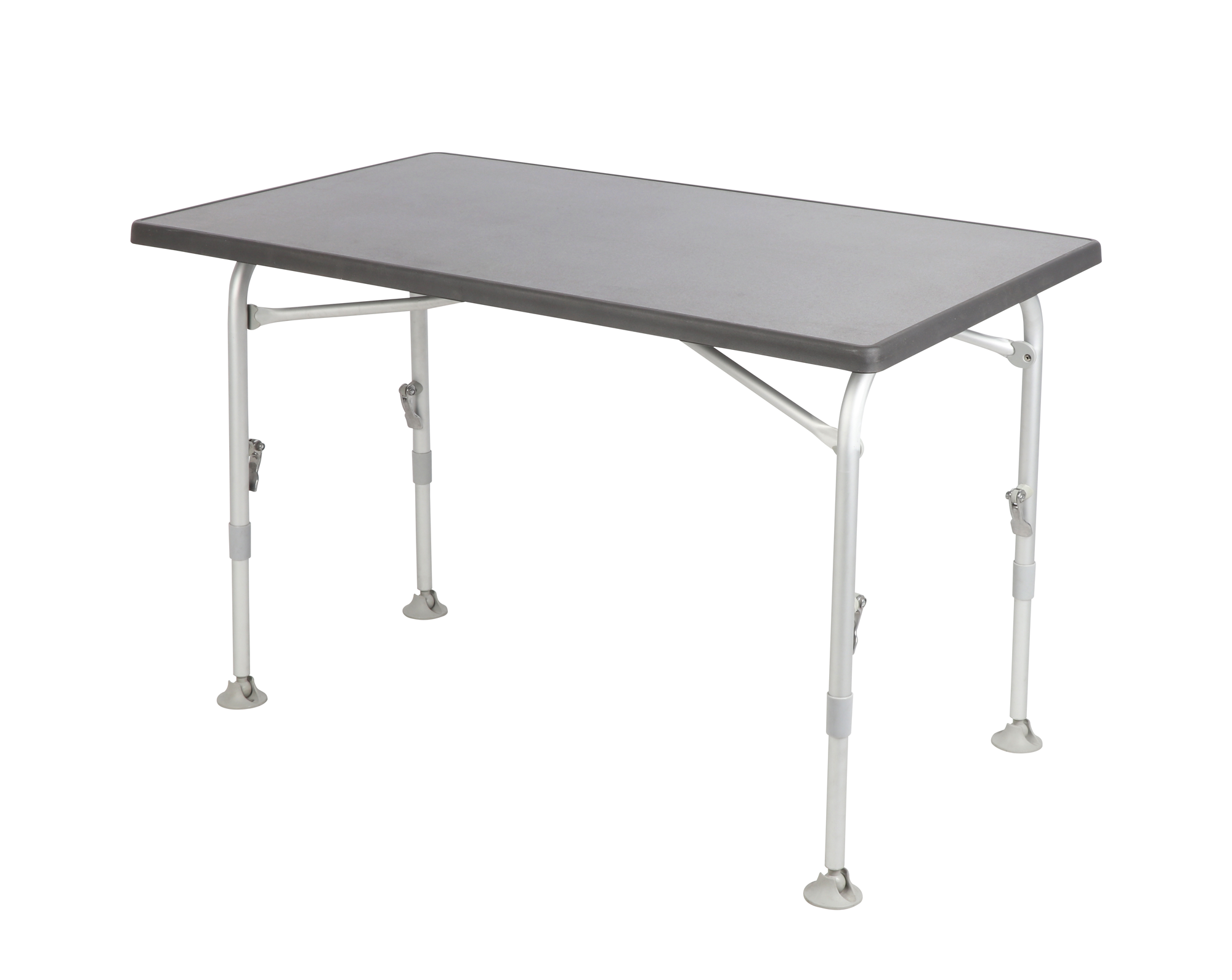 Campingtisch der Extraklasse – Exklusiv bei Berger Mit diesem Klapptisch von Westfield erhältst du einen robusten und langlebigen Tisch für zwei Personen. Das leichte Aluminium-Untergestell sorgt für geringes Gewicht und gleichzeitig hohe Standfestigkeit. Die wasserabweisende Holzspanplatte mit ca. 95 % Holzanteil ist umweltfreundlich gefertigt und mit einer Melaminharzbeschichtung mit Overlay versehen. Die hochwertige Easy-Clean-Kante aus Polypropylen ist besonders strapazierfähig. Dank der dunklen Oberfläche entstehen keine störenden Reflexionen durch Sonneneinstrahlung. Details * Leichtes und standsicheres Aluminium-Untergestell * Wasserabweisende Holzspanplatte mit ca. 95 % Holzanteil * Melaminharzbeschichtung mit Overlay * Easy-Clean-Kante aus Polypropylen * Dunkle, blendfreie Oberfläche * Robuste und langlebige Ausführung für zwei Personen Technische Daten * Tischfläche (L x B): 115 x 70 cm * Höhe Tisch: 59 – 73 cm * Packmaße (L x B x H): 115 x 70 x 8 cm * Rahmen Material: Aluminium, 28 mm * Material Platte: Sevelit (Holzspan mit Melaminharzbeschichtung) * Gewicht: 11,5 kg Lieferumfang * 1 x Westfield Expedition Campingtisch Garantie: Auf dieses Produkt bieten wir 5 Jahre Berger Garantie! Höhenverstellbar: Ja, Mit Tellerfuss: Ja, Farbe: grau, Breite Tischfläche: 70 cm, Länge Tischfläche: 115 cm