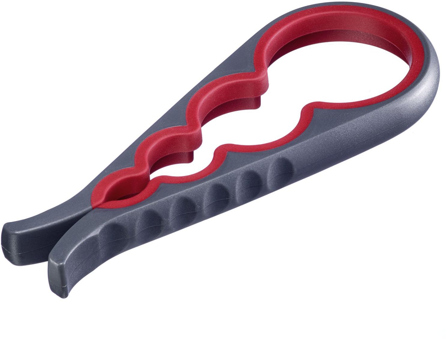 Vielzwecköffner zum Öffnen von Konservengläsern und Flaschen mit Drehverschlüssen unterschiedlicher Deckelgrößen bis ø 6,5 cm. Gewicht: 139 g, Material: Polypropylen (PP), Thermoplastische Elastomer, Maße (LxBxH): 25 x 11,5 x 2 cm
