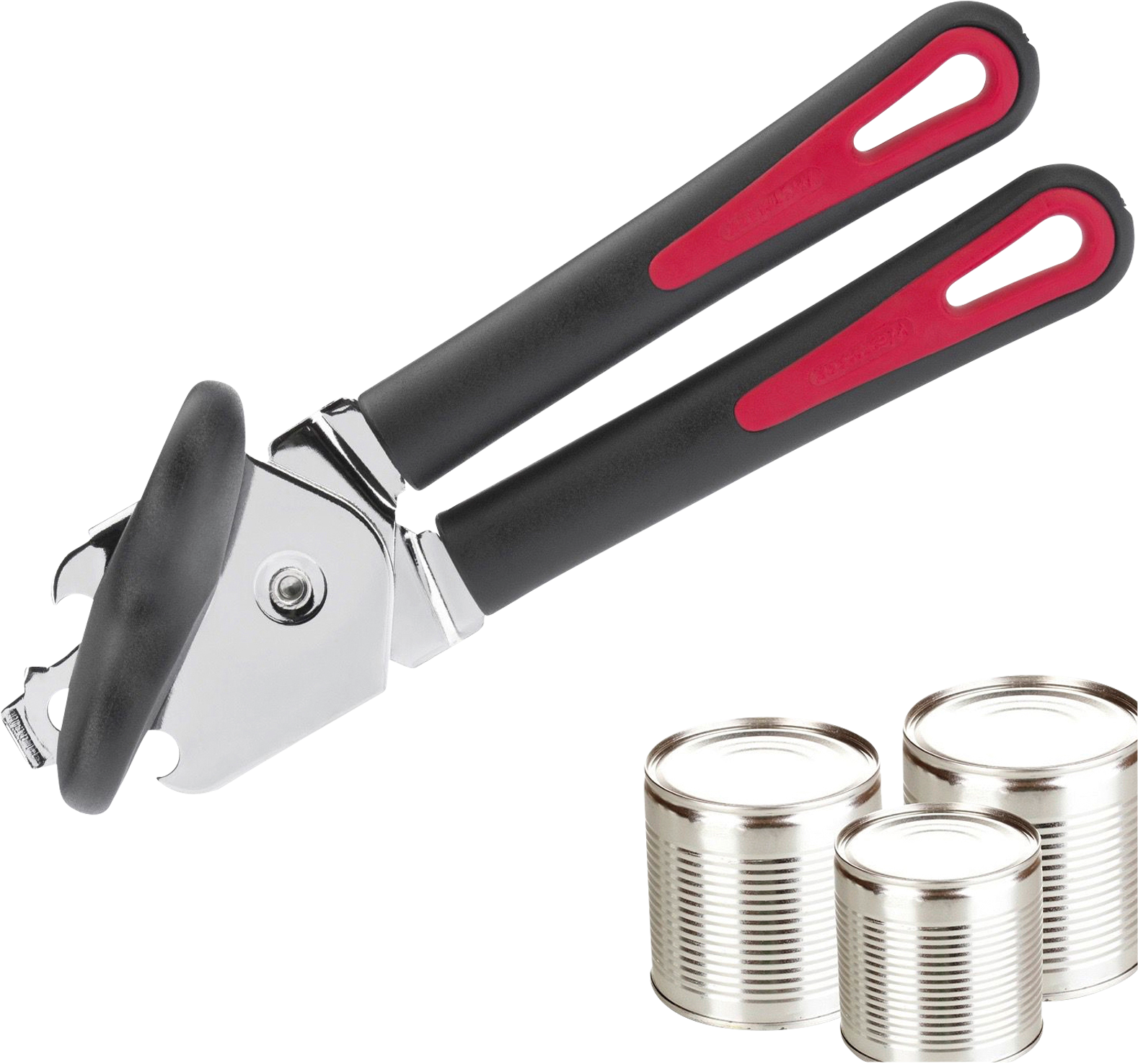 Westmark Gallant Zangendosenöffner – Müheloses und schnelles Öffnen Mit dem Westmark Gallant Zangendosenöffner öffnest Du Konservendosen schnell und ohne großen Kraftaufwand nach dem Schneidrollen-Prinzip. Das gehärtete Schneidrad arbeitet zuverlässig und der große Drehknauf liegt angenehm in der Hand. Mittels des Kapselhebers lassen sich zudem schnell und einfach Flaschen mit Kronkkorken öffnen. Details * Zangendosenöffner zum Öffnen von Konservendosen jeder Größe und Stärke * Schneidrollen-Prinzip mit gehärtetem Schneidrad für zuverlässiges Öffnen * Integrierter Kapselheber zum Öffnen von Flaschen mit Kronkorken * Abgerundete Griffe mit Komfort-Soft-Touch-Oberfläche für sicheren Halt * Großer Drehknauf aus robustem Kunststoff für angenehmes Handling * Mit Aufhänge-Öse, platzsparend verstaubar * Handwäsche empfohlen * Bisphenol-A-frei Technische Daten * Maße: 20,8 x 6,5 x 5,3 cm * Gewicht: 218 g * Material: Stahl, Kunststoff * Farbe: Schwarz/Rot Lieferumfang * 1 x Westmark Zangendosenöffner Gallant Material: Stahl, Kunststoff