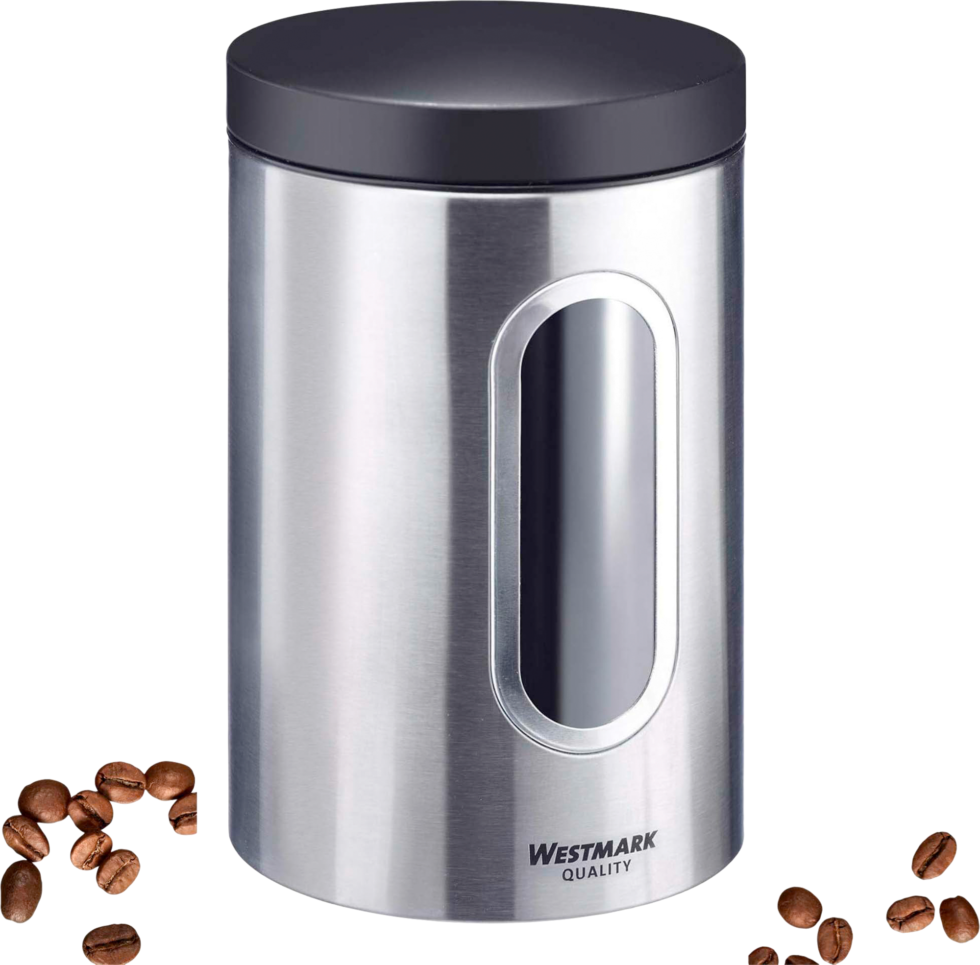 Westmark Vorratsdosen mit Fenster – Praktische Aufbewahrung im zeitlosen Design In Deiner Küche brauchst Du Platz für Lebensmittel und Zubehör – mit den Vorratsdosen von Westmark gelingt Dir das elegant und funktional zugleich. Die runden Edelstahlbehälter sind in drei Größen erhältlich und verfügen über ein antistatisches Sichtfenster, sodass Du den Inhalt sofort erkennst. Der festschließende Deckel mit Pulverbeschichtung schützt zuverlässig vor Feuchtigkeit und lässt sich durch Drehen einfach öffnen und schließen. Ob Kaffee, Zucker, Mehl, Nudeln oder kleine Küchenutensilien – diese stapelbaren Vorratsdosen sorgen für Ordnung und Übersicht. Details: * Runde Vorratsdosen aus rostfreiem Edelstahl * Mit antistatischem Sichtfenster für direkte Sicht auf den Inhalt * Festschließender Deckel mit edler Pulverbeschichtung * Langlebig, stapelbar und BPA-frei * Einfache Reinigung von Hand (nicht spülmaschinengeeignet) * Ideal zur Aufbewahrung von trockenen Lebensmitteln wie Kaffee, Mehl, Zucker oder Nudeln Technische Daten: * Variante 950 ml: Maße ø 8,7 × 15,5 cm, Gewicht 195 g, Material Edelstahl/Eisen/Kunststoff (PET), Farbe Schwarz/Silber, Fassungsvermögen ca. 250 g Kaffee * Variante 1800 ml: Maße ø 12 × 19,5 cm, Gewicht 332 g, Material Edelstahl/Eisen/Kunststoff (PET), Farbe Schwarz/Silber, Fassungsvermögen ca. 500 g Kaffee * Variante 2300 ml: Maße ø 13 × 21,5 cm, Gewicht 390 g, Material Edelstahl/Eisen/Kunststoff (PET), Farbe Schwarz/Silber, Fassungsvermögen ca. 750 g Kaffee Lieferumfang: Je nach gewählter Variante: * 1x Westmark Vorratsdose mit Fenster 950 ml * 1x Westmark Vorratsdose mit Fenster 1800 ml * 1x Westmark Vorratsdose mit Fenster 2300 ml Farbe: silber, Volumen: 2300 ml